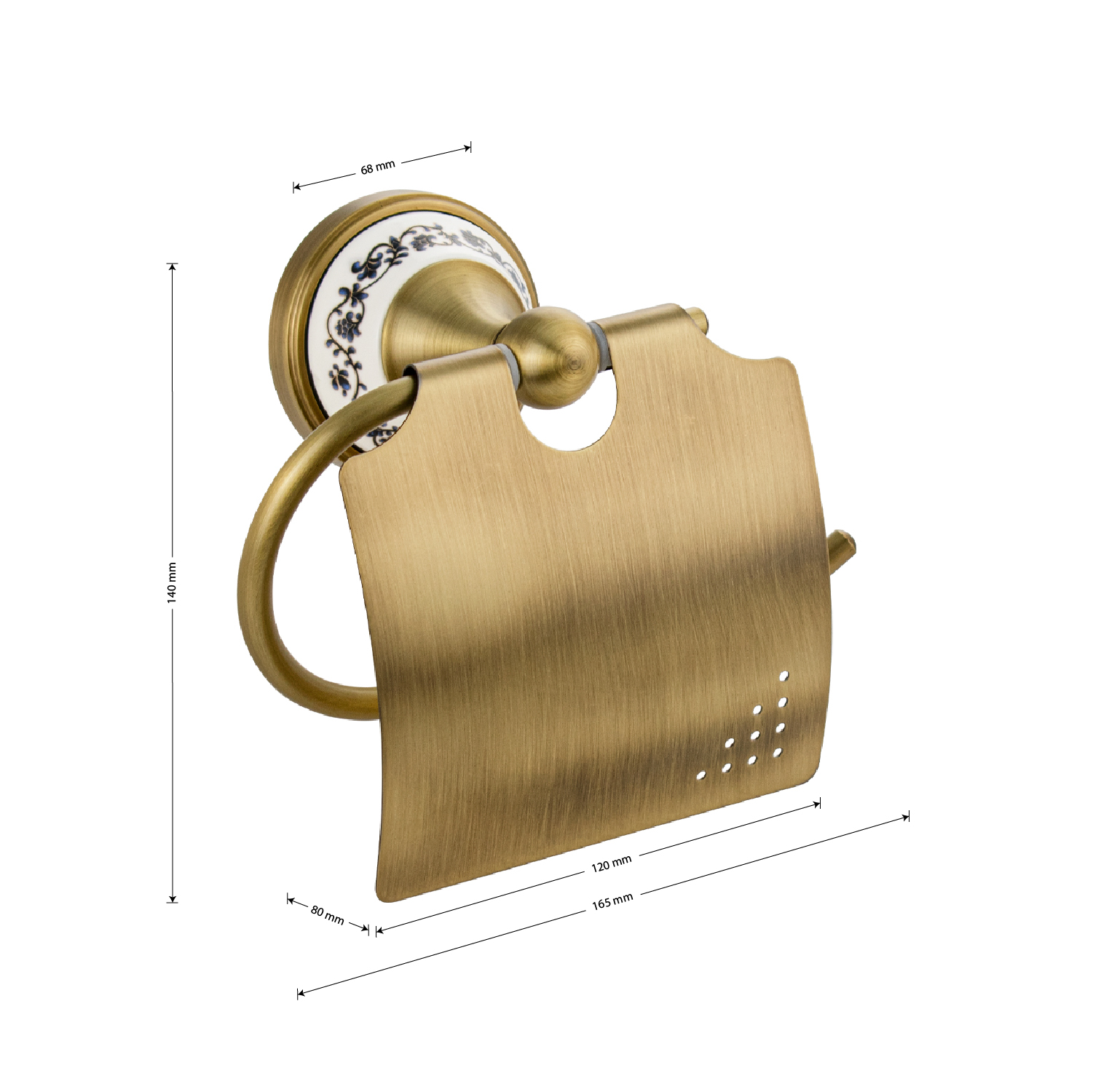 Держатель туалетной бумаги с экраном, металлический, с керамической вставкой, с орнаментом, стильный и функциональный элемент санузла. Благодаря наличию крышки рулон будет защищен от попадания воды. Держатель для туалетной бумаги легко и удобно крепится к стене при помощи фурнитуры входящей в комплект поставки. Материал изготовления — ЦАМ. Имеет специальное бронзовое, матовое покрытие, которое защищает изделие от влаги и придает ему безупречный стильный вид и долговечность. Удобно чистить и легко менять рулоны. Габаритные размеры: ширина 165 мм, высота 140 мм, глубина 80 мм, основание 68 мм. Вес - 0,52 кг, объём - 0,0025 м3.