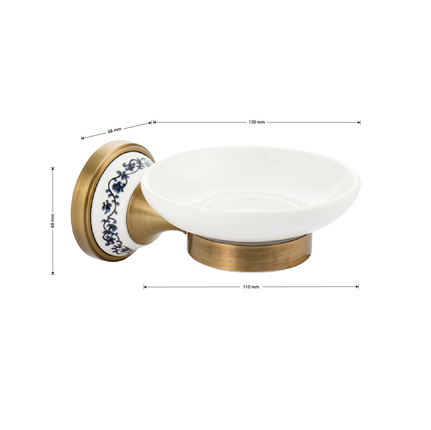 Мыльница подвесная, керамическая с креплением к стене, круглой формы на металлическом основании с керамической вставкой с орнаментом. Изделие выполнено из белой керамики и металла. Материал изготовления — ЦАМ. Имеет специальное бронзовое, матовое покрытие, которое защищает изделие от влаги и придает ему безупречный стильный вид и долговечность. Идеально подойдет не только для ванной, но и для кухни. Изделие крепится к стене с помощью дюбелей и саморезов (входят в комплект). Габаритные размеры: глубина 150 мм, основание 68 мм, диаметр мыльницы 110 мм. Вес - 0,50 кг, объём - 0,00166 м3.
