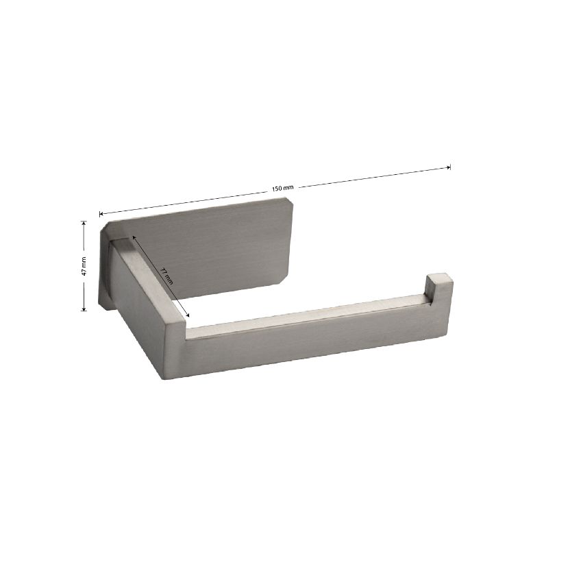 Бумагодержатель без крышки, на прямоугольном основании, стильный и функциональный элемент санузла. Изготовлен из прочной нержавеющей стали марки SUS 304 матовым покрытием, которое придает безупречный стильный вид и долговечность. Держатель для туалетной бумаги легко и удобно крепится к стене при помощи самоклейки, без сверления. Удобно чистить и легко менять рулоны. Габаритные размеры: ширина 150 мм, высота 47 мм, глубина 77 мм, основание 45*95 мм. Вес - 0.18 кг, объём - 0.00077 м3.
