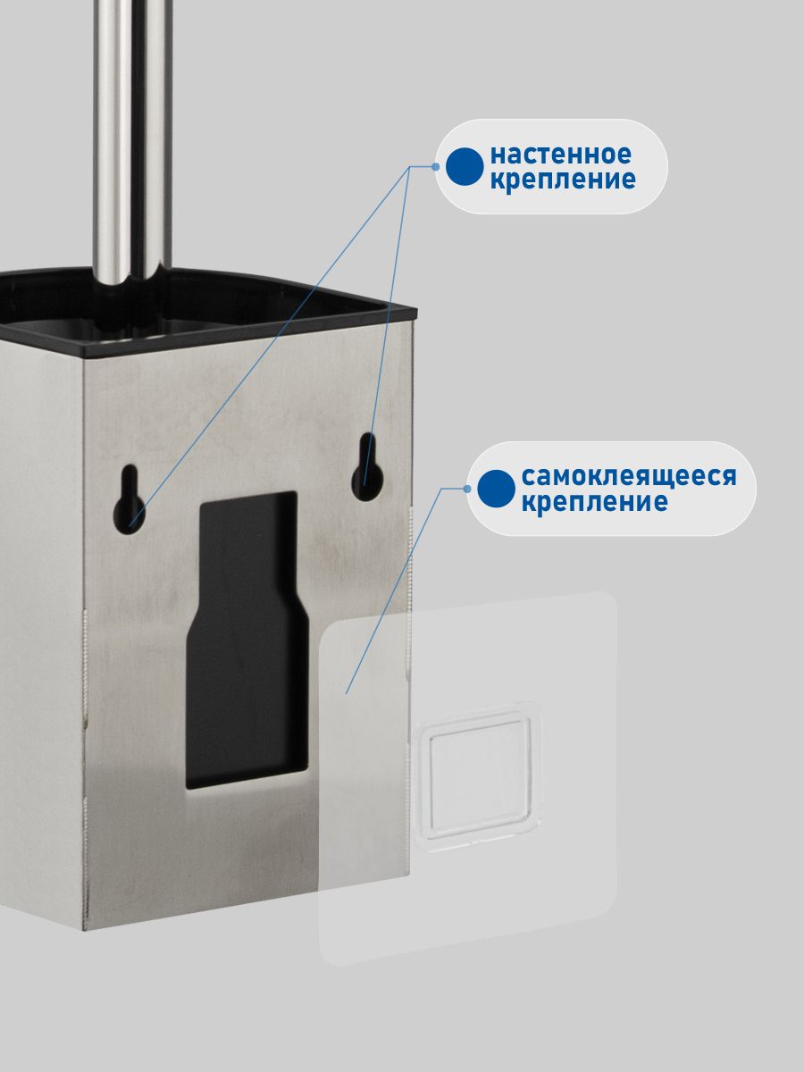 Ёршик с хромированной колбой из нержавеющей стали, настенный, с универсальным креплением ( самоклеящееся/дюбель ), необходимый аксессуар любой туалетной комнаты. Приспособление обеспечит порядок и правильное хранение гигиенических принадлежностей. Изделие выполнено из с металла с черным покрытием. Силиконовая щетина ерша гарантирует отличный результат очистки санузлов. Такое сочетание материалов делает конструкцию прочной и долговечной. Ёршик легко крепится к стене при помощи фурнитуры входящей в комплект поставки. Имеет специальное покрытие, которое защищает изделие от влаги и придает ему стильный внешний вид. Габаритные размеры: высота 425 мм, высота колбы 117 мм, ширина 85 мм, глубина 83 мм. Вес - 0.49 кг, объём - 0.0024 м3.