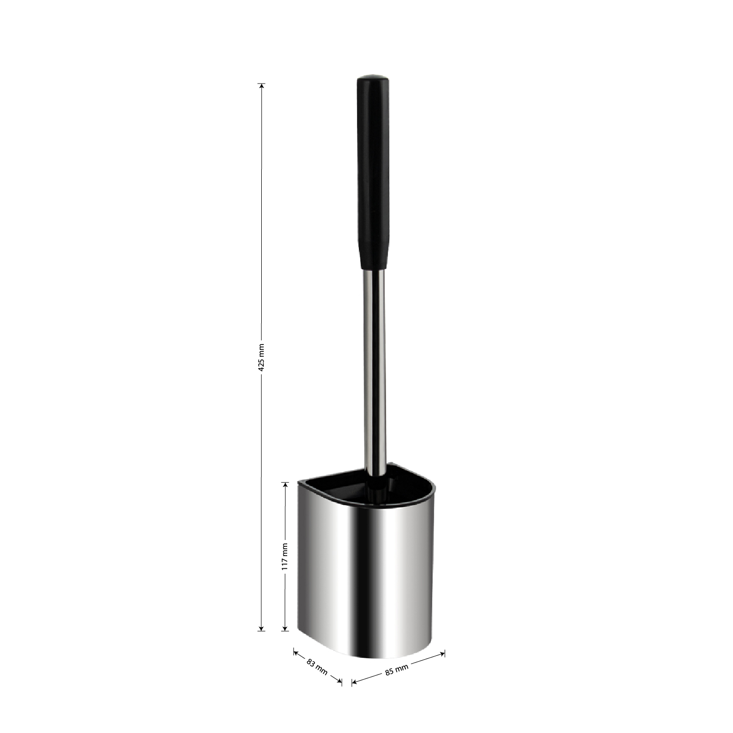Ёршик с хромированной колбой из нержавеющей стали, настенный, с универсальным креплением ( самоклеящееся/дюбель ), необходимый аксессуар любой туалетной комнаты. Приспособление обеспечит порядок и правильное хранение гигиенических принадлежностей. Изделие выполнено из с металла с черным покрытием. Силиконовая щетина ерша гарантирует отличный результат очистки санузлов. Такое сочетание материалов делает конструкцию прочной и долговечной. Ёршик легко крепится к стене при помощи фурнитуры входящей в комплект поставки. Имеет специальное покрытие, которое защищает изделие от влаги и придает ему стильный внешний вид. Габаритные размеры: высота 425 мм, высота колбы 117 мм, ширина 85 мм, глубина 83 мм. Вес - 0.49 кг, объём - 0.0024 м3.