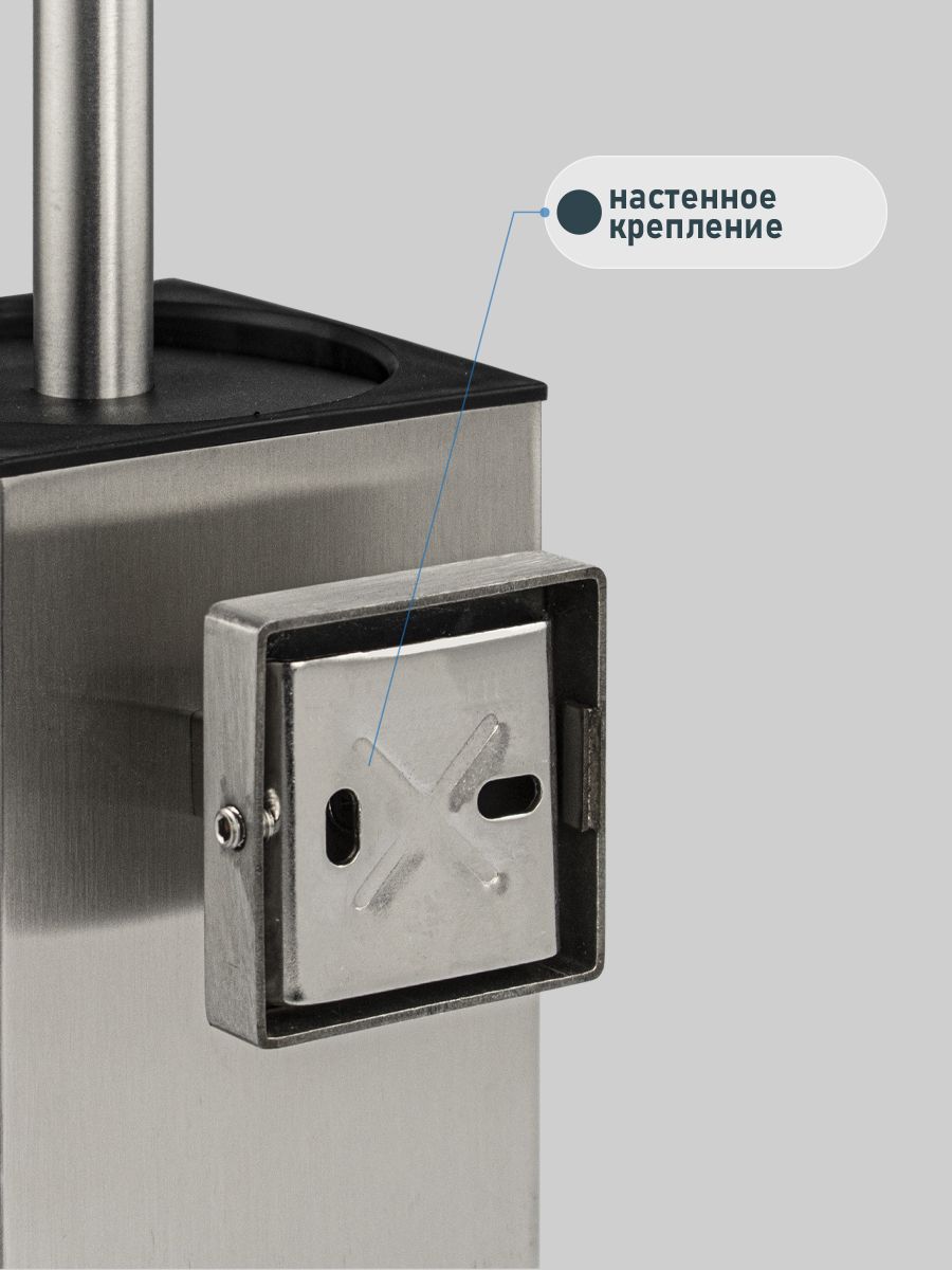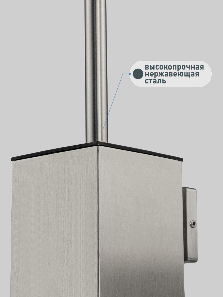 Ёршик с матовой квадратной колбой из нержавеющей стали марки SUS 304, настенный, необходимый аксессуар любой туалетной комнаты. Приспособление обеспечит порядок и правильное хранение гигиенических принадлежностей. Изделие выполнено из с металла с матовым покрытием. Жесткая щетина ерша гарантирует отличный результат очистки санузлов. Такое сочетание материалов делает конструкцию прочной и долговечной. Ёршик легко крепится к стене при помощи фурнитуры входящей в комплект поставки. Имеет специальное покрытие, которое защищает изделие от влаги и придает ему стильный внешний вид. Габаритные размеры: высота 385 мм, высота колбы 145 мм, ширина 80 мм, глубина 80 мм. Вес - 0.59 кг, объём - 0.00323 м3.