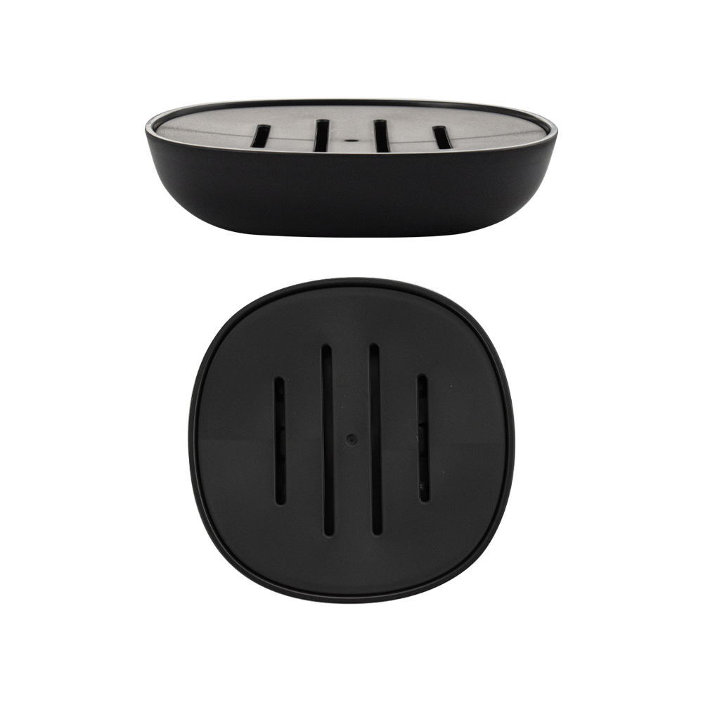 Мыльница для мыла настольная — необходимый аксессуар любой ванной комнаты и кухни. Приспособление обеспечит порядок и правильное хранение гигиенических принадлежностей. Изделие выполнено из пластика АБС с чёрным матовым покрытием. Такое сочетание материалов делает конструкцию прочной и долговечной. Гармоничный дизайн и чёрный цвет отлично впишется в любой интерьер. Изделие имеет специальное покрытие, которое защищает его от влаги и придает ему дизайнерский внешний вид. В коллекции представлены: дозатор для мыла, мыльница, напольный ершик для унитаза, стакан для зубных щеток. Габаритные размеры: высота 25 мм, ширина 110 мм, глубина 110 мм. Вес - 0,100 кг, объём - 0,00056 м3