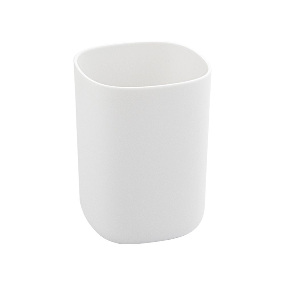 Стакан для зубных щёток и паст настольный — необходимый аксессуар любой ванной комнаты и кухни. Приспособление обеспечит порядок и правильное хранение гигиенических принадлежностей. Изделие выполнено из пластика АБС с белым матовым покрытием. Такое сочетание материалов делает конструкцию прочной и долговечной. Гармоничный дизайн и белая расцветка отлично впишется в любой интерьер. Изделие имеет специальное покрытие, которое защищает его от влаги и придает ему дизайнерский внешний вид. В коллекции представлены: дозатор для мыла, мыльница, напольный ершик для унитаза, стакан для зубных щеток. Габаритные размеры: высота стакана 100 мм, ширина 75 мм, глубина 75 мм. Вес - 0,100 кг, объём - 0,00095 м3