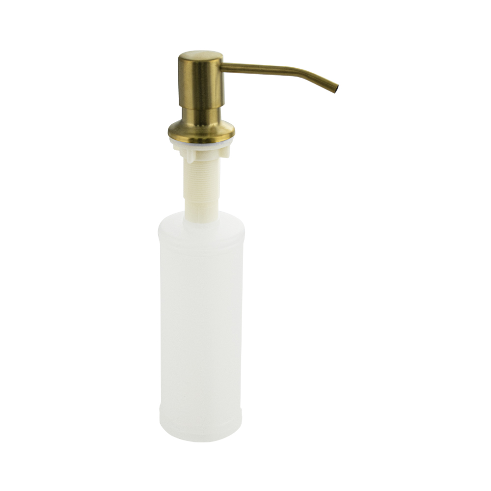 Дозатор для жидкого мыла и моющих средств, под золото, врезной, можно установить на кухонную мойку, если в ней предусмотрено место под встраиваемый дозатор, или на столешницу в любом удобном месте. Антивандальный корпус дозатора изготовлен из высокопрочного ABS-пластика и нержавеющей стали. Требуемое отверстие для установки встраиваемого дозатора не менее 25 мм. Это очень удобный и полезный аксессуар на кухне. Наполнять его жидким моющим средством не сложно, нужно просто снять верхнюю часть дозатора и залить требуемое количество жидкого мыла в колбу, емкостью 300 мл. Последовательно нажимая на верхнюю часть дозатора, Вы получаете требуемое количество моющего средства. Габаритные размеры: высота 265 мм, ширина 110 мм, диаметр посадочного седла 40 мм, длины резьбы 65 мм. Вес - 0,150 кг, объем - 0,00150 м3.