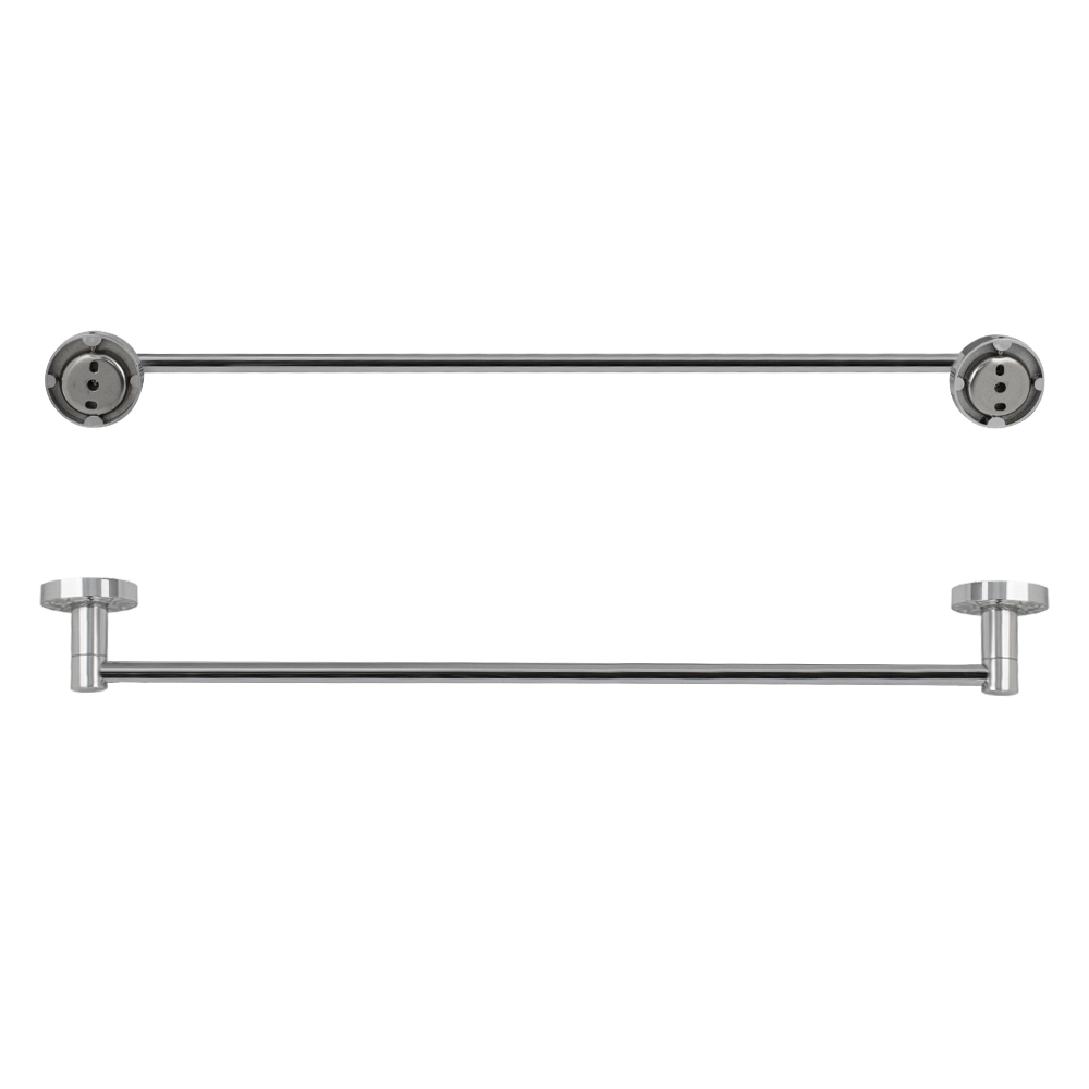 Держатель для полотенец металлический, хромированный, прямой. Материал изготовления — ЦАМ (цинк-алюминий-медь) + нержавеющая сталь. Хромированное покрытие очень стойко переносит истирания и обеспечивает зеркальный блеск изделия. На держателе с легкостью можно размещать любые полотенца для сушки. Идеально подойдет не только для ванной, но и для кухни, а также для дачи или гаража - при необходимости на держатель можно вешать любые предметы. Изделие крепится к стене с помощью дюбелей и саморезов (входят в комплект). Размеры: длина 600 мм, диаметр посадочного седла 55 мм, глубина 65 мм. Вес - 0,600 кг, объём - 0,00470 м3.