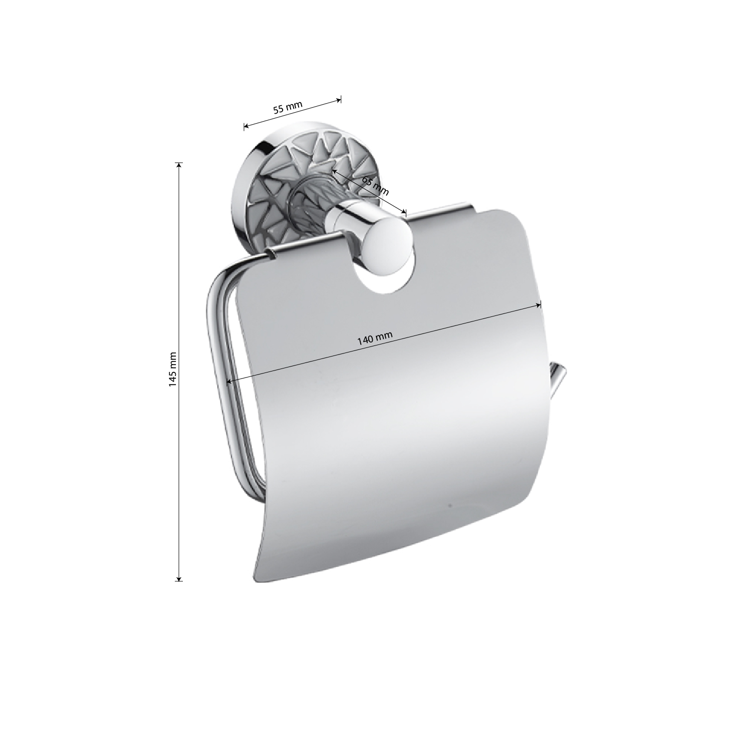 Бумагодержатель с крышкой, металлический, хромированный, стильный и функциональный элемент санузла. Благодаря наличию крышки рулон будет защищен от попадания воды. Держатель для туалетной бумаги легко и удобно крепится к стене при помощи фурнитуры входящей в комплект поставки. Материал изготовления — ЦАМ (цинк-алюминий-медь) + нержавеющая сталь. Имеет специальное хромированное покрытие, которое защищает изделие от влаги и придает ему блестящий внешний вид. Удобно чистить и легко менять рулоны. Размеры: ширина 140 мм, высота 145 мм, глубина 65 мм, основание 55 мм. Вес - 0,500 кг, объём - 0,00184 м3.