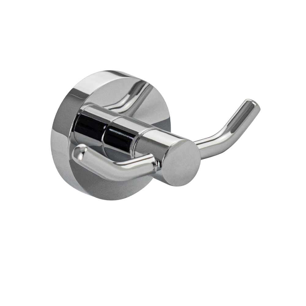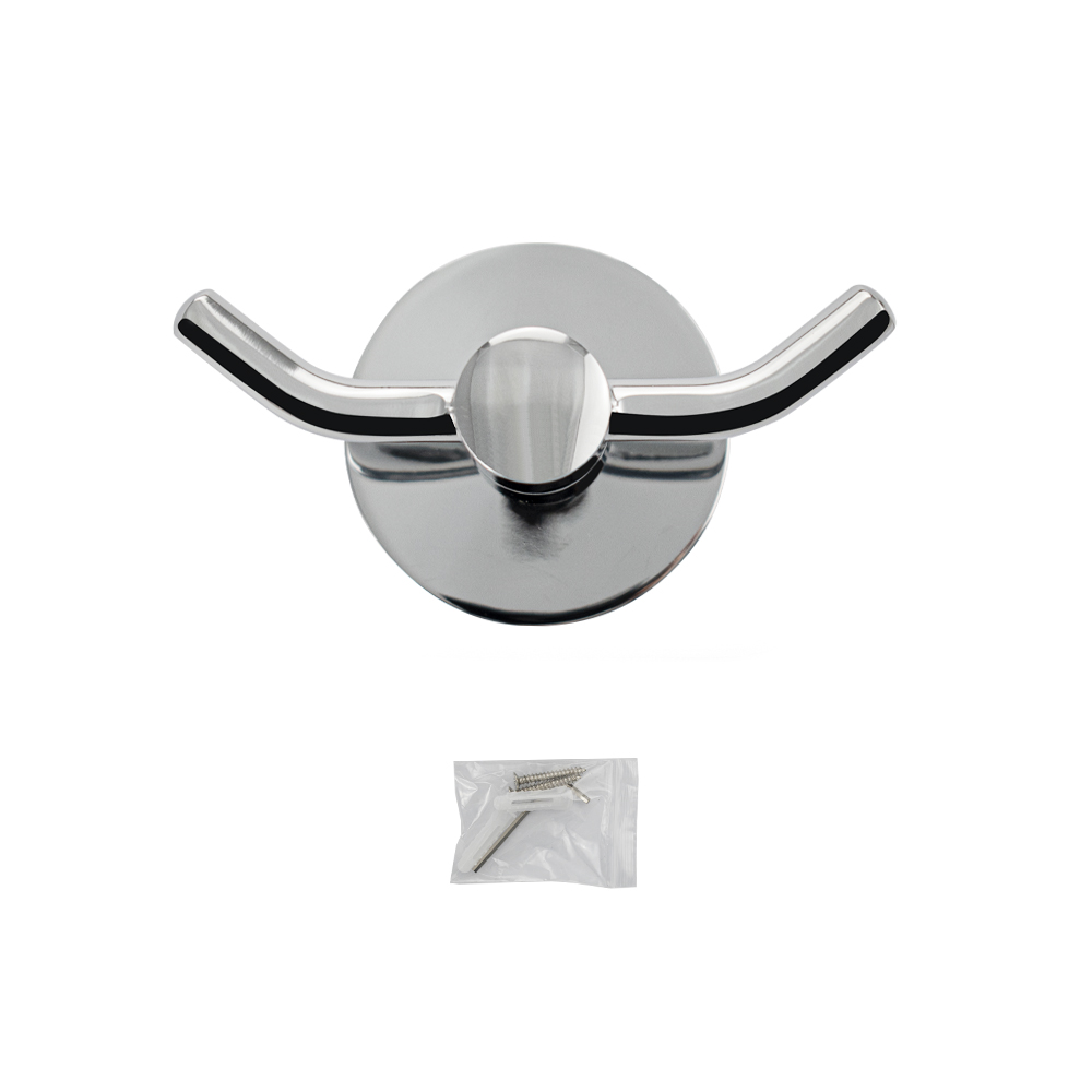 Крючок двойной для полотенец, металлический, хромированный. Материал изготовления — ЦАМ (цинк-алюминий-медь) + нержавеющая сталь. Хромированное покрытие очень стойко переносит истирания и обеспечивает зеркальный блеск изделия. На крючке с легкостью можно размещать вещи для сушки или вешать, как полотенца, так и одежду перед походом в душ. Идеально подойдет не только для ванной, но и для кухни, а также для дачи или гаража, при необходимости на держатель можно вешать любые предметы. Изделие крепится к стене с помощью дюбелей и саморезов (входят в комплект). Габаритные размеры: ширина 85 мм, высота 50 мм, глубина 50 мм. Вес - 0.15 кг, объём - 0.00033 м3.