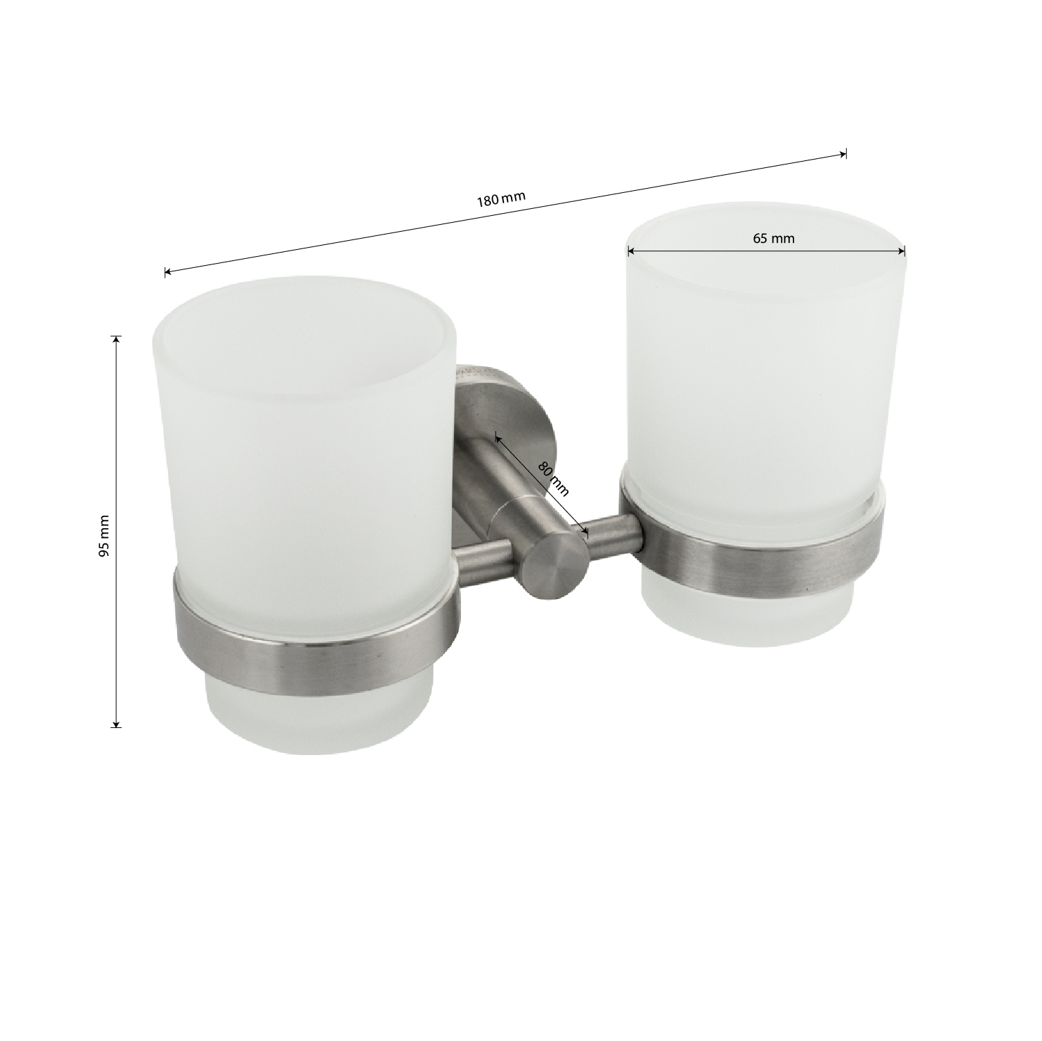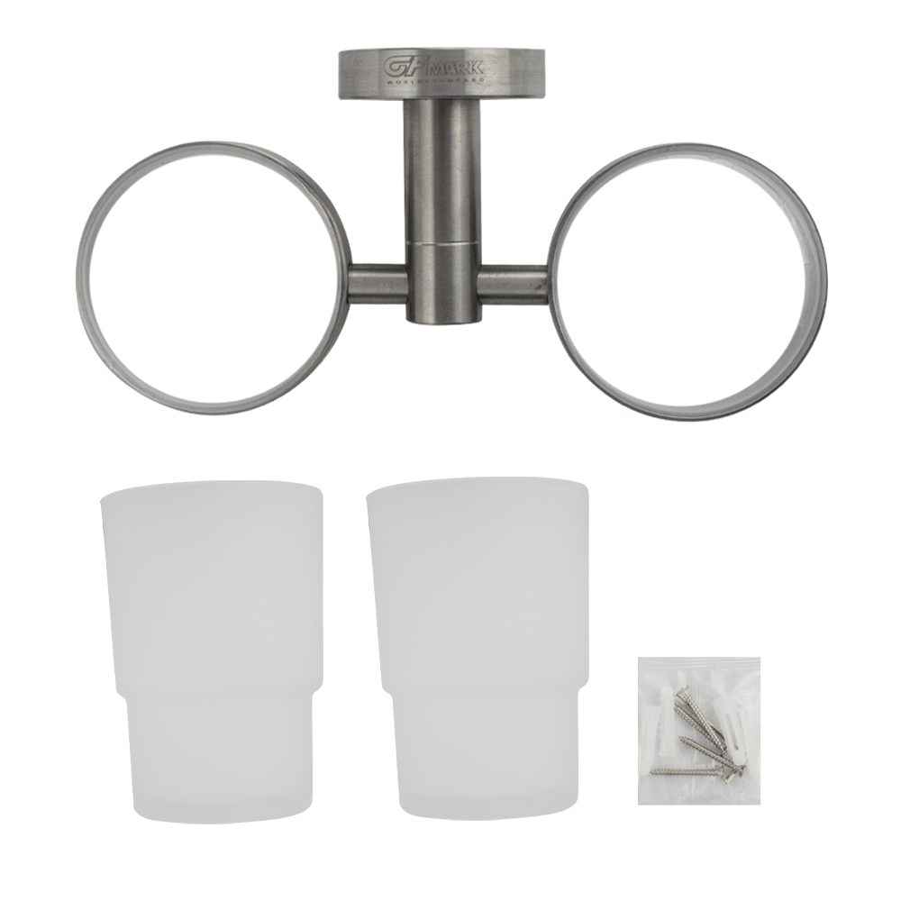 Стакан + стакан стеклянный с креплением к стене, правильной формы на основании. Изделие выполнено из матового стекла и металла с матовым покрытием. Изготовлен из прочной нержавеющей стали марки SUS 304 с матовым покрытием, которое придает безупречный стильный вид и долговечность. Идеально подойдет не только для ванной, но и для кухни. Изделие крепится к стене с помощью дюбелей и саморезов (входят в комплект). Габаритные размеры: высота стакана 95 мм, диаметр 65 мм, ширина 180 мм, глубина 80 мм, основание 50 мм. Вес - 0,800 кг, объём - 0,00347 м3.