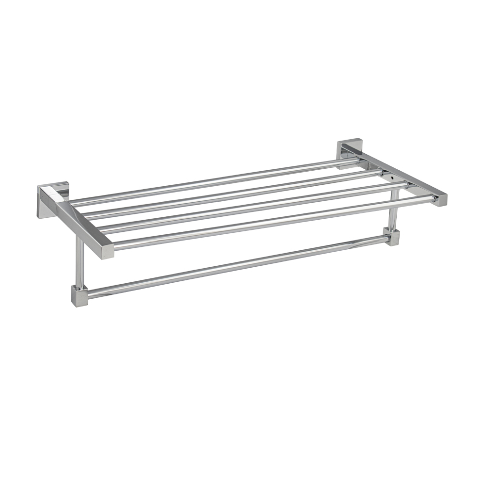 Полка для полотенца с опорой, большая, для ванной, привлекает своим современным дизайном, многофункциональностью и надежностью конструкции. Кухня, ванная, прихожая, кладовая или гардеробная - эта полка идеально подойдет везде. Металлическая полка оснащена дополнительной перекладиной. Хромированная нержавеющая сталь делает её устойчивой к влаге и исключает появление ржавчины. Полка для ванной функциональное и практичное решение для любого интерьера. Материал изготовления - ЦАМ. Хромированное покрытие очень стойко переносит истирания и обеспечивает безупречный вид изделия. Идеально подойдет не только для ванной, но и для кухни. Изделие крепится к стене с помощью дюбелей и саморезов (входят в комплект). Габаритные размеры: длина 610 мм, высота 140 мм, глубина 210 мм. основание мм. Вес - 1.12 кг, объём - 0.0091 м3.