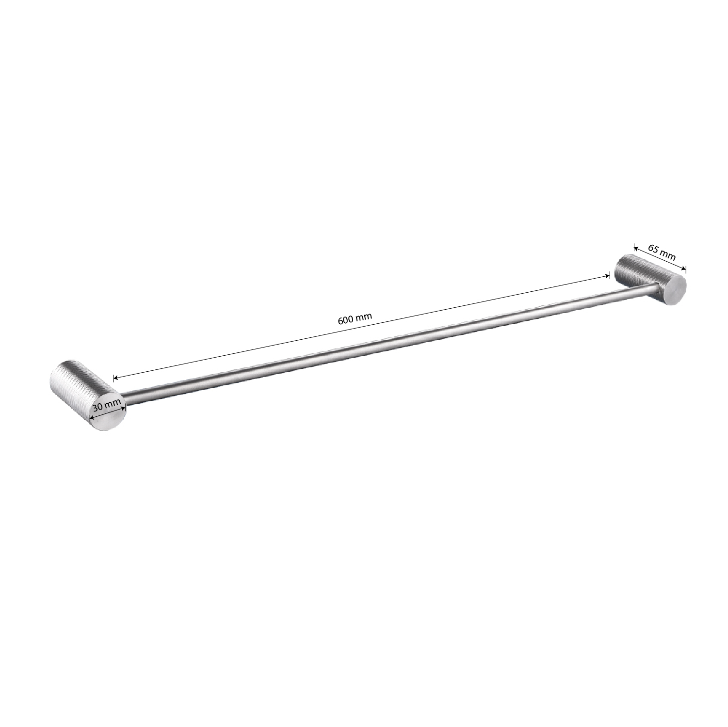 Держатель для полотенец металлический, прямой. Изготовлен из прочной нержавеющей стали марки SUS 304 с матовым покрытием, которое придает безупречный стильный вид и долговечность. На держателе с легкостью можно размещать любые полотенца для сушки. Идеально подойдет не только для ванной, но и для кухни, а также для дачи или гаража - при необходимости на держатель можно вешать любые предметы. Изделие крепится к стене с помощью дюбелей и саморезов (входят в комплект). Габаритные размеры: длина 600 мм, диаметр посадочного седла 30 мм, глубина 65 мм. Вес - 0,600 кг, объём - 0,00366 м3.
