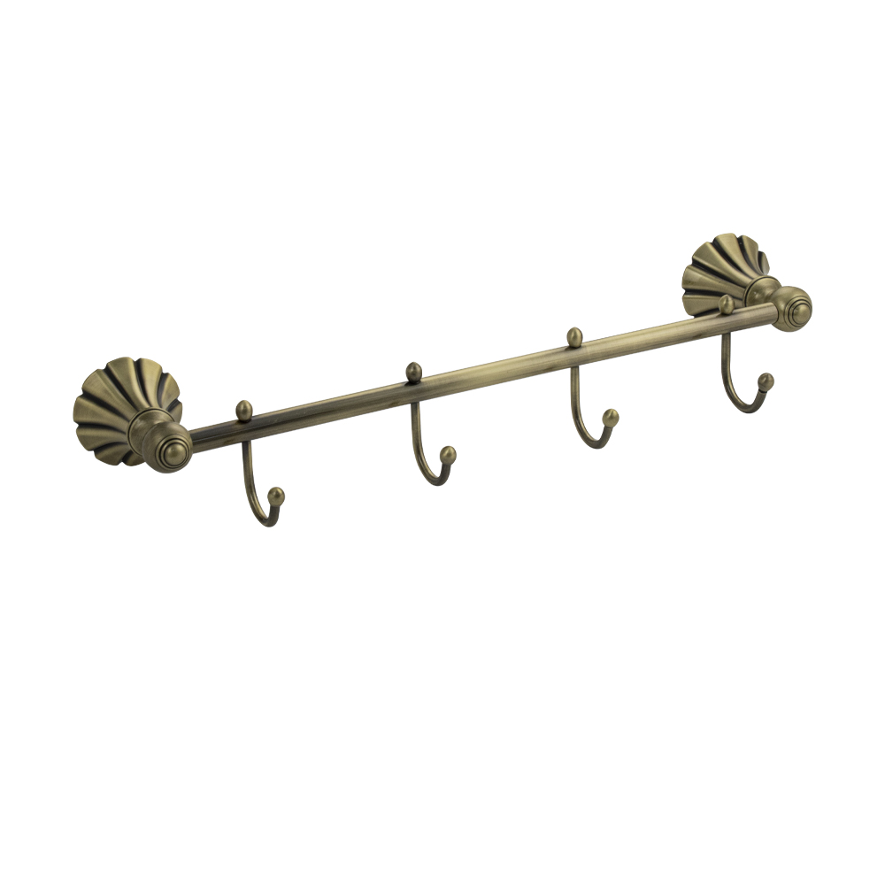 Держатель для полотенец металлический, с четырьмя крючками. Материал изготовления — латунь. Бронзовое, матовое покрытие очень стойко переносит истирания и обеспечивает безупречный стильный вид изделия и долговечность. На держателе с легкостью можно размещать вещи для сушки или вешать, как полотенца, так и одежду перед походом в душ. Идеально подойдет не только для ванной, но и для кухни, а также для дачи или гаража - при необходимости на держатель можно вешать любые предметы. Изделие крепится к стене с помощью дюбелей и саморезов (входят в комплект). Габаритные размеры: длина 400 мм, высота 110 мм, глубина 120 мм. Вес - 0,700 кг, объём - 0,00324 м3