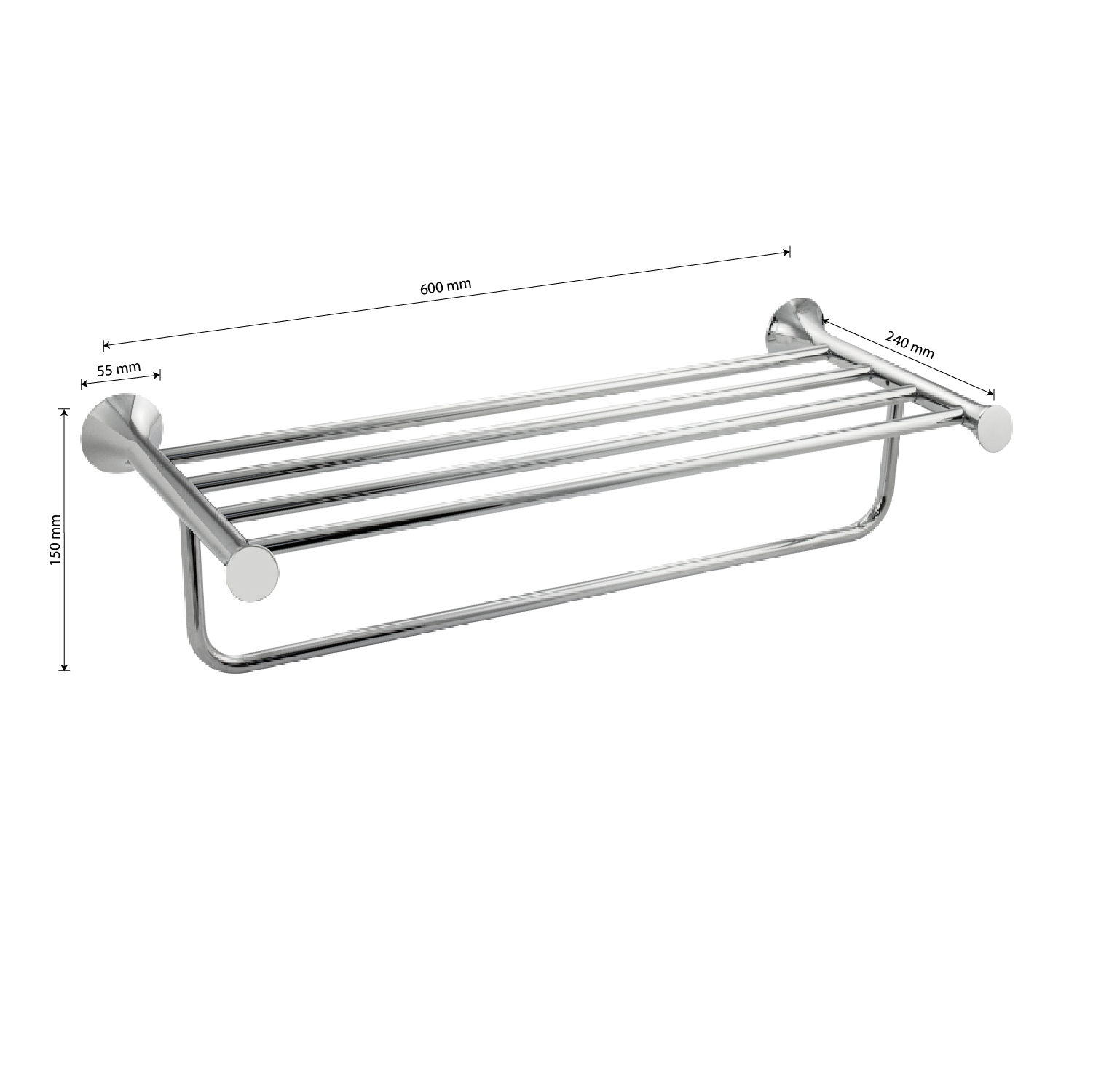 Полка для полотенца с опорой большая, для ванной, привлекает своим современным дизайном, многофункциональностью и надежностью конструкции. Кухня, ванная, прихожая, кладовка или гардеробная - эта полка идеально подойдет везде. Металлическая полка оснащена дополнительной перекладиной. Безупречно отшлифованная нержавеющая сталь делает её устойчивой к влаге и исключает появление ржавчины. Полка для ванной функциональное и практичное решение для любого интерьера. Материал изготовления —  нержавеющая сталь марки 304. Хромированное покрытие очень стойко переносит истирания и обеспечивает зеркальный блеск изделия. Идеально подойдет не только для ванной, но и для кухни. Изделие крепится к стене с помощью дюбелей и саморезов (входят в комплект). Габаритные размеры: ширина 600 мм, глубина 240 мм, высота 150 мм, основание 55 мм. Вес - 1,900 кг, объём - 0,02290 м3.