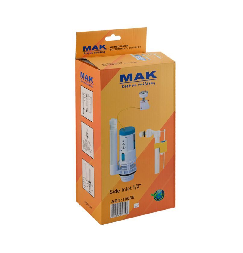 Комплект для бачка унитаза, ко всем моделям, универсальный, состоящий из впускного нижнего и выпускного клапана. Сливной механизм бачка имеет высокую хромированную кнопку, универсальный, подходит для бачков различной высоты, регулировка выпускного клапана производится ползунком на корпусе. Тросик на выпуском клапане позволяет устанавливать клапан в бачки любой высоты и конфигурации. Изделие выполнено из высококачественного пластика АБС, который обеспечивает длительное использование без поломок, отличается пониженным уровнем шума. Может устанавливаться в любом типе бачка с боковой подводкой для подачи воды. Габаритные размеры: высота 240 мм, ширина 105 мм, подключение 1/2, наружняя резьба. Вес - 0,66 кг, объём - 0,00556 м3.