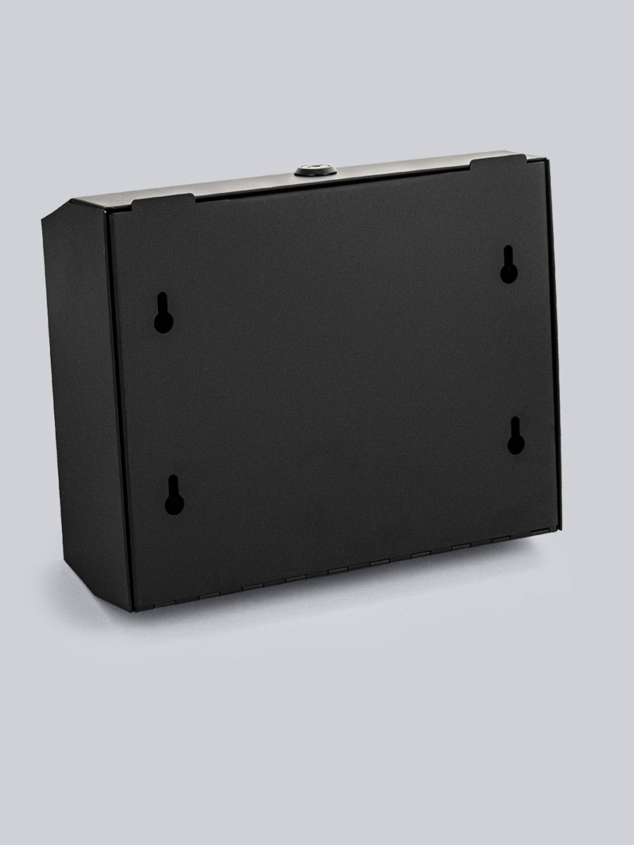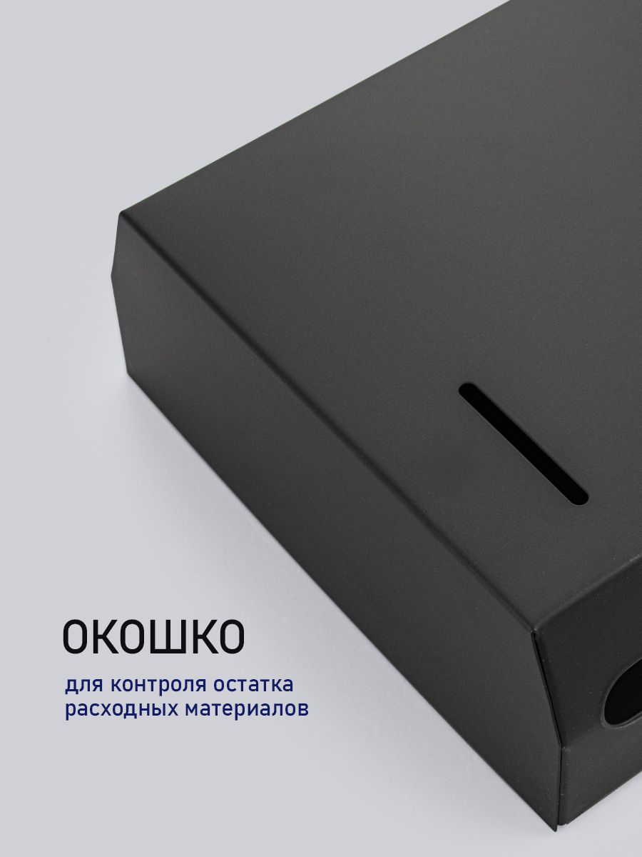 Диспенсер для бумажных полотенец Z сложения, с ключом, из нержавеющей стали, матовый, черного цвета. Антивандальный диспенсер вместимостью 200-300 листов. Прямоугольной формы, компактный, вместительный и надежный. Окно - индикатор позволяет легко осуществлять контроль за наличием полотенец, встроенный замок обезопасит от кражи расходного материала. Привлекательный дизайн подойдет для самых разных интерьеров. Габаритные размеры: высота 210 мм, ширина 265 мм, глубина 80 мм. Вес - 1,15 кг, объем - 0,006 м3.