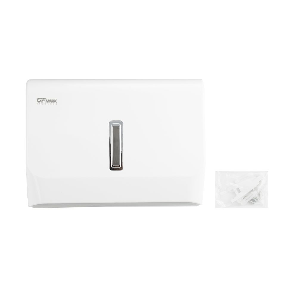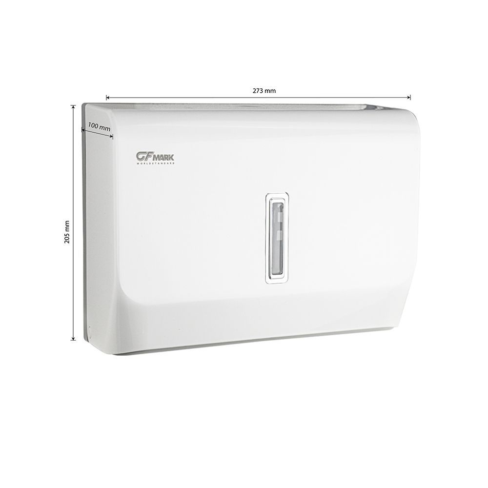 Диспенсер для бумажных полотенец Z и V сложения, на две пачки, с ключом, белый, из высокопрочного пластика АБС. Антивандальный, диспенсер вместимостью 300 - 500 листов. Прямоугольной формы компактный, вместительный и надежный. Окно - индикатор позволяет легко осуществлять контроль за наличием полотенец, а встроенный замок обезопасит от кражи расходного материала. Привлекательный дизайн подойдет для самых разных интерьеров. Ультратонкий диспенсер обеспечивает гигиеничный поштучный отбор. Большое смотровое окошко позволяет контролировать наличие полотенец. Габаритные размеры: высота 270 мм, ширина 300 мм, глубина 100 мм. Вес - 1,0 кг, объем - 0,00955 м3.
