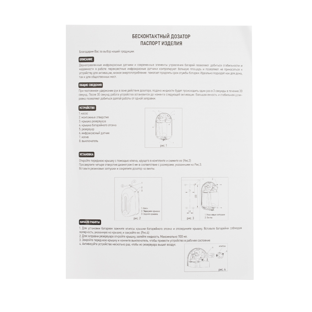 Настенный, автоматический сенсорный дозатор, предназначен для бесконтактной обработки рук антисептиком, предназначен для установки в любых санитарно-гигиенических комнатах. Имеет ключ и пластиковый замок. Дозатор прост в эксплуатации, достаточно поднести ладонь к сенсору для получения порции средства. Автоматическая подача – предотвращает распространение микробов, вызванных прикосновением. Для удобства контроля за уровнем средства на лицевой поверхности есть смотровое окно. Корпус диспенсера изготовлен из прочного пластика АБС белого цвета, который выдерживает различные механические воздействия. В резервуар емкостью 1000 мл можно заливать как антисептик, так и прочие средства. Разместив диспенсер на стене, достаточно время от времени проверять заполненность резервуара. Это отличное решение как для частных владений, так и для гостиниц, кафе, столовых и прочих общественных мест. Питание от 4-х батареек АА (в комплект не входят). Габаритные размеры: высота 235 мм, ширина 140 мм, глубина 110 мм. Вес - 0,900 кг,