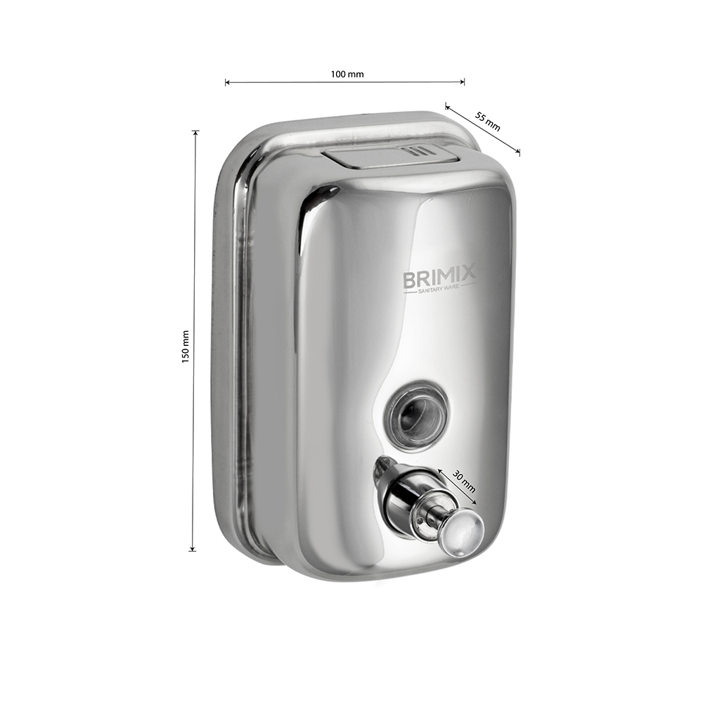 Механический дозатор для жидкого мыла хромированный, предназначен для установки в любых санитарно-гигиенических комнатах.Дозатор прост в эксплуатации, достаточно нажать на кнопку для получения порции средства. Для удобства контроля за уровнем мыла на лицевой поверхности есть смотровое окно. Корпус диспенсера изготовлен из нержавеющей стали марки 304, который выдерживает различные механические воздействия. В резервуар емкостью 500 мл можно заливать как жидкое мыло, так и прочие средства. Разместив диспенсер на стене, достаточно время от времени проверять заполненность резервуара. Иного ухода он не требует, не нуждается в замене батареек. Это отличное решение как для частных владений, так и для гостиниц, кафе, столовых и прочих общественных мест. Габаритные размеры: высота 150 мм, ширина 100 мм, глубина 55 мм. Вес - 0,350 кг, объем - 0,00160 м3.
