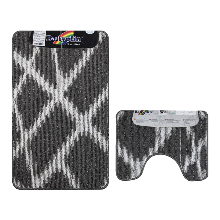 Коврик в ванную CROSS-LOOP, двойной, СЕРЫЙ, клетка, 500х800, 500х400 мм,100% полиэстер