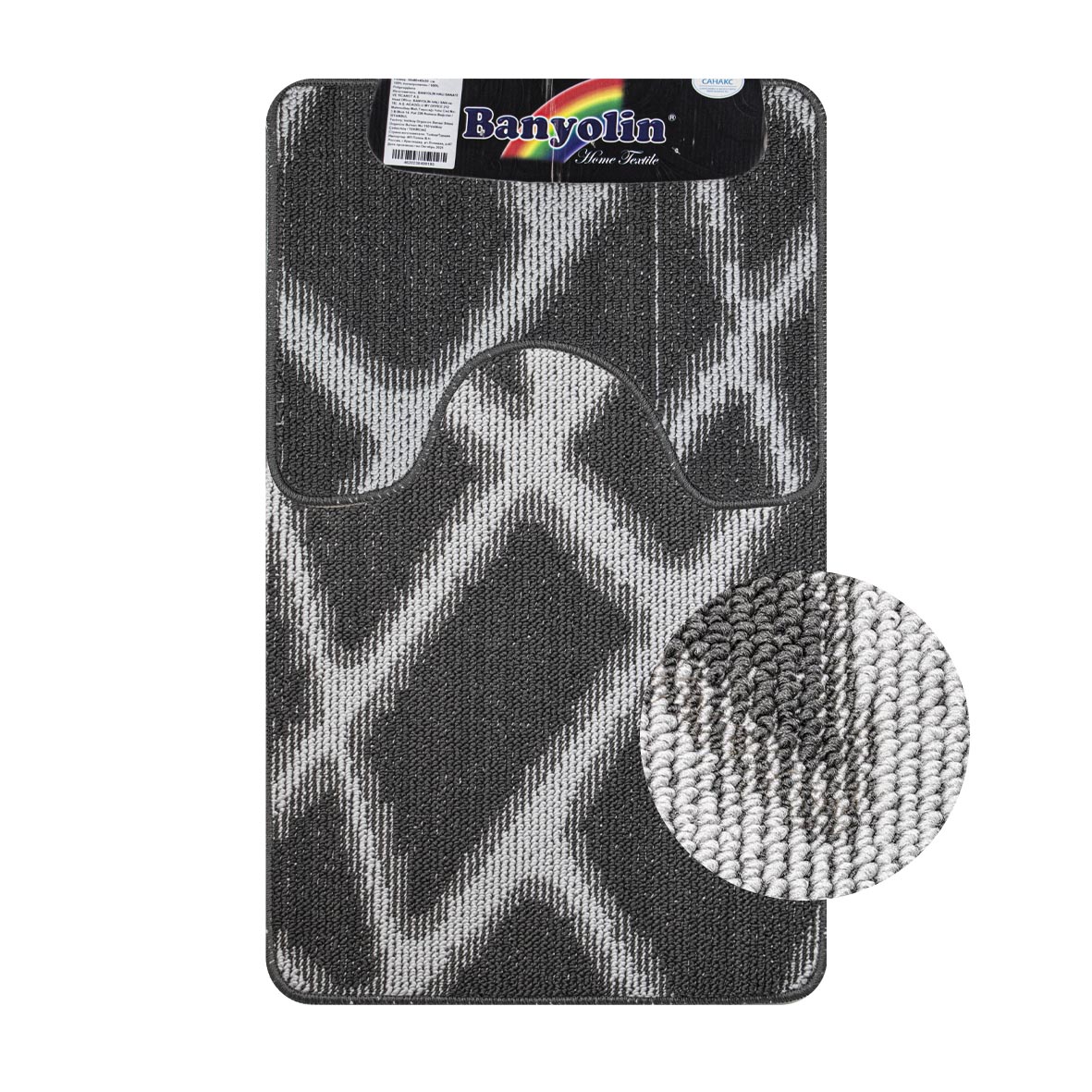 Коврик в ванную CROSS-LOOP, двойной, СЕРЫЙ, однотонный, 500х800, 500х400 мм,100% полиэстер