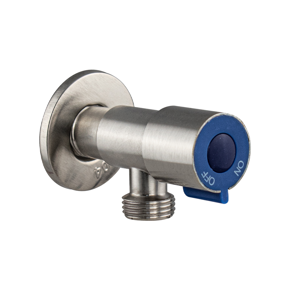 Кран металлокерамика угловой 1/2"х1/2" с чашкой, наружняя резьба, матовый корпус из нержавеющей стали марки 304, ручка с синей вставкой поворот на 90˚, предназначен для подключения к водопроводной сети санитарных приборов (смывных бачков, стиральных и посудомоечных машин, лейки биде и пр.) с помощью гибких соединителей с накидной гайкой. Позволяет перекрывать подачу воды к конкретному потребителю. Габаритные размеры: высота 65 мм, ширина 30 мм, диаметр посадочного седла 47 мм, длина резьбы 20 мм. Вес - 0,200 кг, объём - 0,00031 м3. В комплекте кран, чашка
