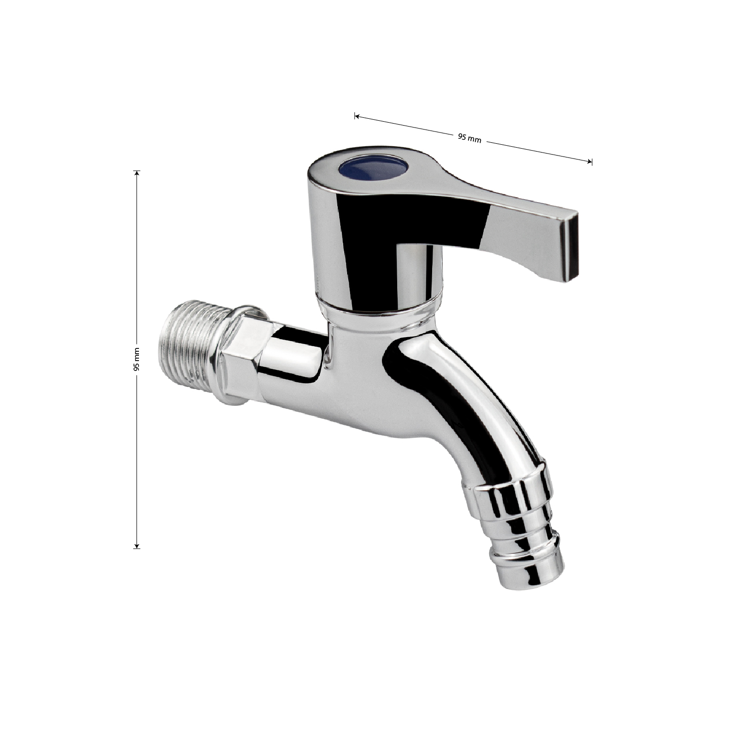 Кран водоразборный 1/2н, из высокопрочного пластика АБС хромированный со штуцером, с возможностью подсоединения поливочного шланга. Габаритные размеры: длина 95 мм от стены, высота 95 мм. Металлокерамика, ручка флажок. Вес - 0,08 кг, объём - 0,00026 м3