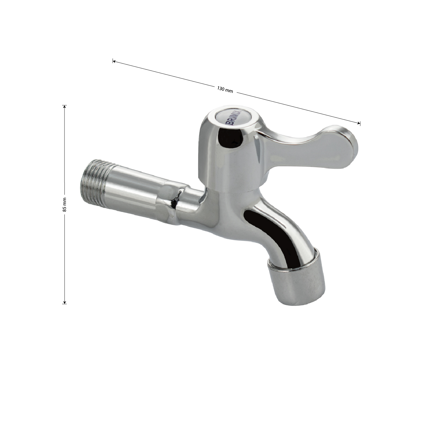 Кран водоразборный 1/2н 10 см от стены, хромированный с аэратором, металлокерамика, ручка флажок. Габаритные размеры: высота 85 мм, длина 130 мм. Вес - 0,180 кг, объём - 0,00044 м3.