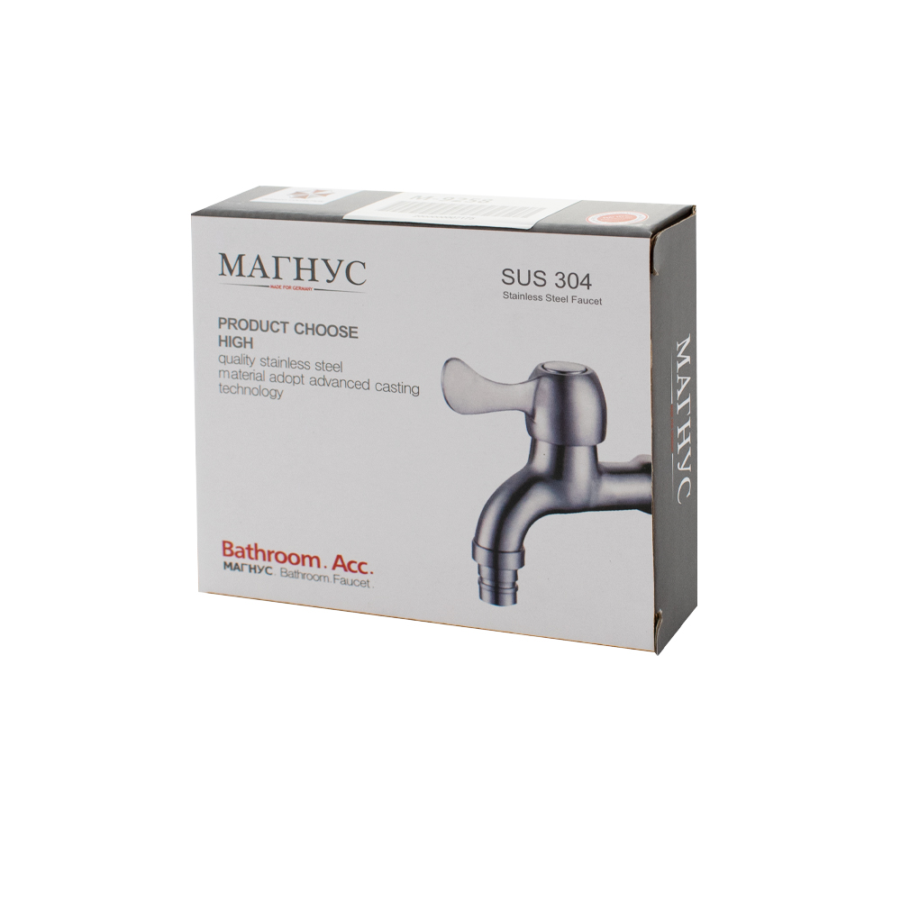 Кран водоразборный на 1/2", от стены 10 см, наружняя резьба, матовый корпус из нержавеющей стали марки 304, со штуцером для подключения поливочного шланга, металлокерамика, ручка флажок поворот на 90˚. Такая модель может использоваться на домашней кухне, на даче, в медицинских учреждениях и общественных местах. Габаритные размеры: высота 95 мм, длина 90 мм. Вес - 0,250 кг, объём - 0,00043 м3.