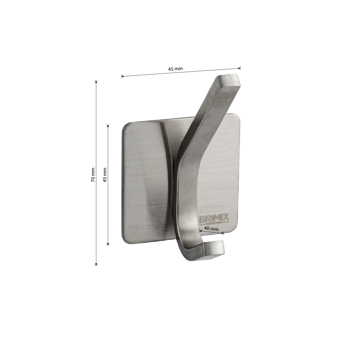 Крючок для принадлежностей, металлический, матовый, двойной. Изготовлен из прочной нержавеющей стали марки SUS 304 с матовым покрытием, которое придает безупречный стильный вид и долговечность. На держателе, с легкостью можно размещать вещи для сушки или вешать, как полотенца, так и одежду перед походом в душ. Идеально подойдет не только для ванной, но и для кухни, а также для дачи или гаража - при необходимости на держатель можно вешать любые предметы. Изделие крепится к стене с помощью самоклейки, без сверления. Габаритные размеры: основание 45*45 мм, общая высота 70 мм, глубина 40 мм. Вес - 0,075 кг, объём - 0,00015 м3.