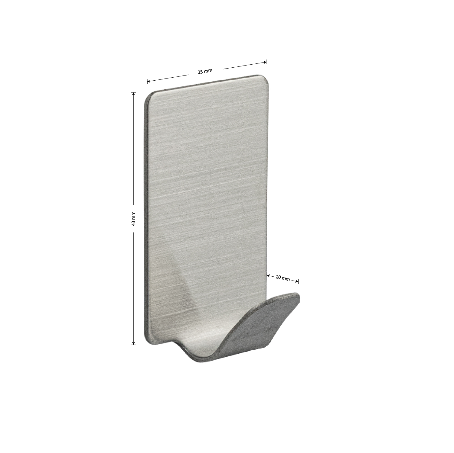 Крючок для принадлежностей металлический, одинарный. Изготовлен из прочной нержавеющей стали марки SUS 304 с матовым покрытием, которое придает безупречный стильный вид и долговечность. На держателе с легкостью можно размещать вещи для сушки или вешать, как полотенца, так и одежду перед походом в душ. Идеально подойдет не только для ванной, но и для кухни, а также для дачи или гаража - при необходимости на держатель можно вешать любые предметы. Изделие крепится к стене с помощью самоклейки, без сверления. Габаритные размеры: высота 43 мм, ширина 25 мм, глубина 20 мм. Вес - 0,0286 кг, объём - 0,00003 м3.