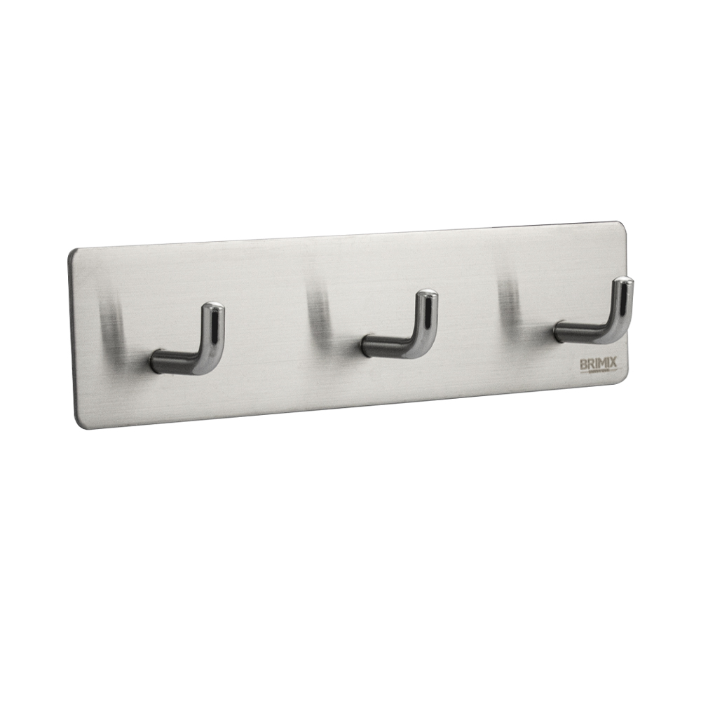 Крючок тройной на планке высокопрочный, самоклейка без сверления, из нержавеющей стали SUS 304