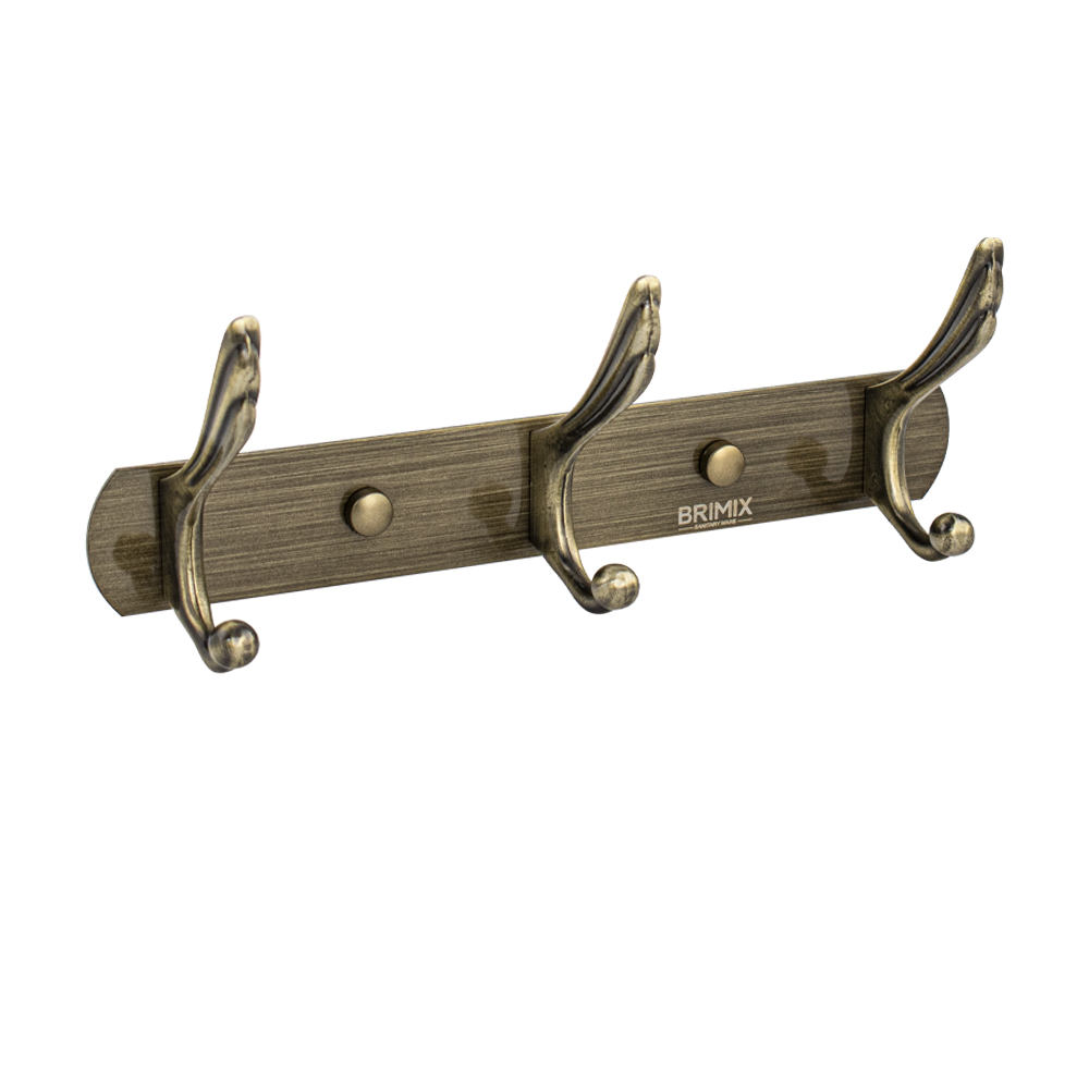Вешалка - держатель для принадлежностей металлический, с тремя двойными крючками. Изготовлен из прочной нержавеющей стали марки SUS 304 с бронзовым покрытием, которое придает безупречный стильный вид и долговечность. Бронзовое покрытие очень стойко переносит истирания и обеспечивает долгий срок службы изделия. На держателе с легкостью можно размещать вещи для сушки или вешать, как полотенца, так и одежду перед походом в душ. Идеально подойдет не только для ванной, но и для кухни, а также для дачи или гаража - при необходимости на держатель можно вешать любые предметы. Изделие крепится к стене с помощью дюбелей и саморезов (входят в комплект). Габаритные размеры: длина 245 мм, высота 95 мм, глубина 55 мм. Вес - 0,200 кг, объём - 0,0015 м3.