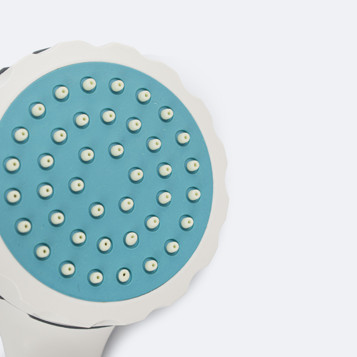 Душевая лейка отличается современным технологичным дизайном, высокой надежностью, долговечностью. Она изготовлена из влагостойкого пластика АБС и имеет глянцевое покрытие белого цвета. Корпус отличается небольшим весом, что исключает повреждение напольной плитки или эмали ванны при случайном падении. Ухаживать за душевой лейкой легко. Глянцевую поверхность достаточно протереть мягкой салфеткой, она в течение долгого времени не потеряет своего блеска. Система помогает мгновенно очистить силиконовые форсунки душевой лейки от известкового налета и загрязнения. Габаритные размеры: высота 200 мм, диаметр лейки 80 мм. Вес - 0,13 кг, объём - 0,0008 м3.