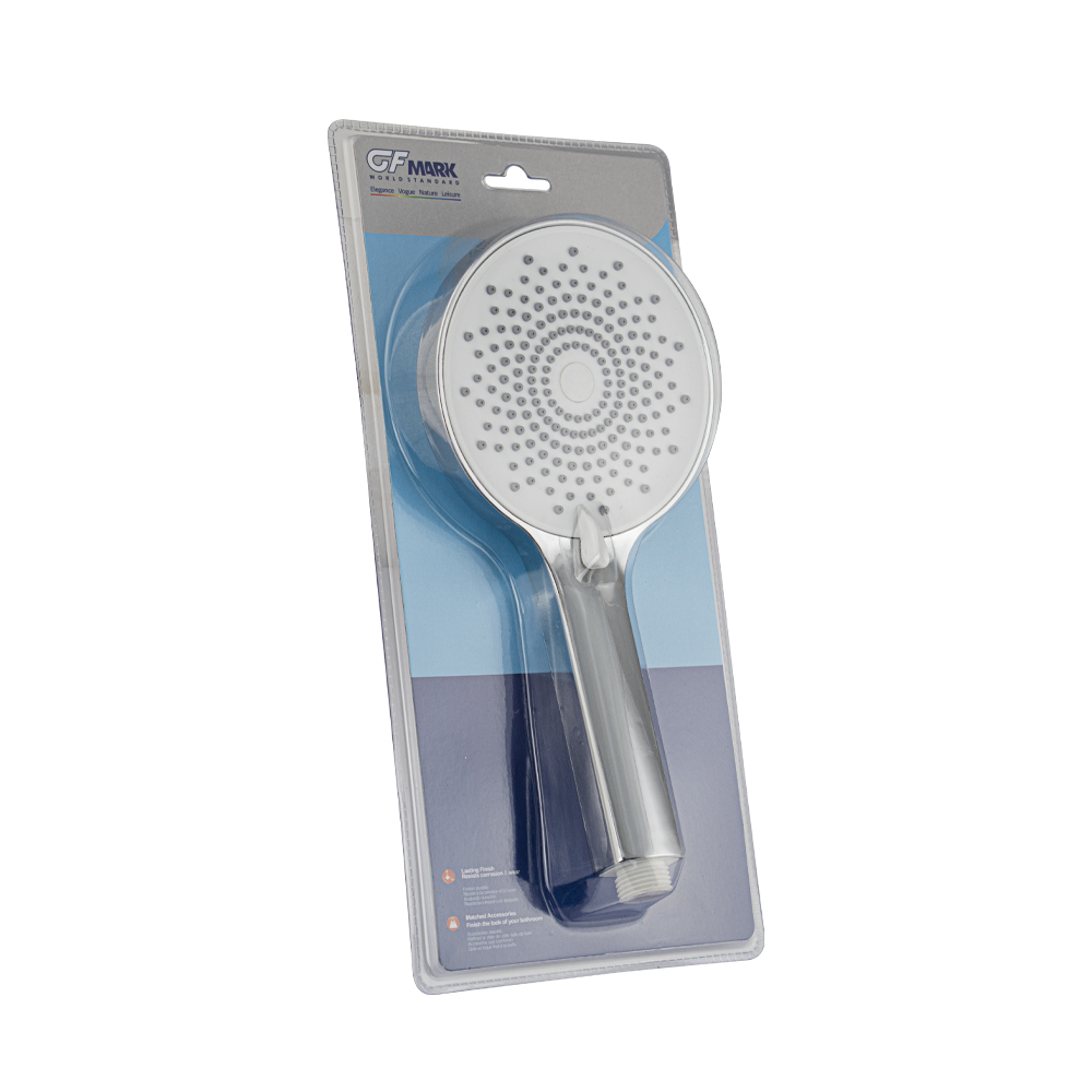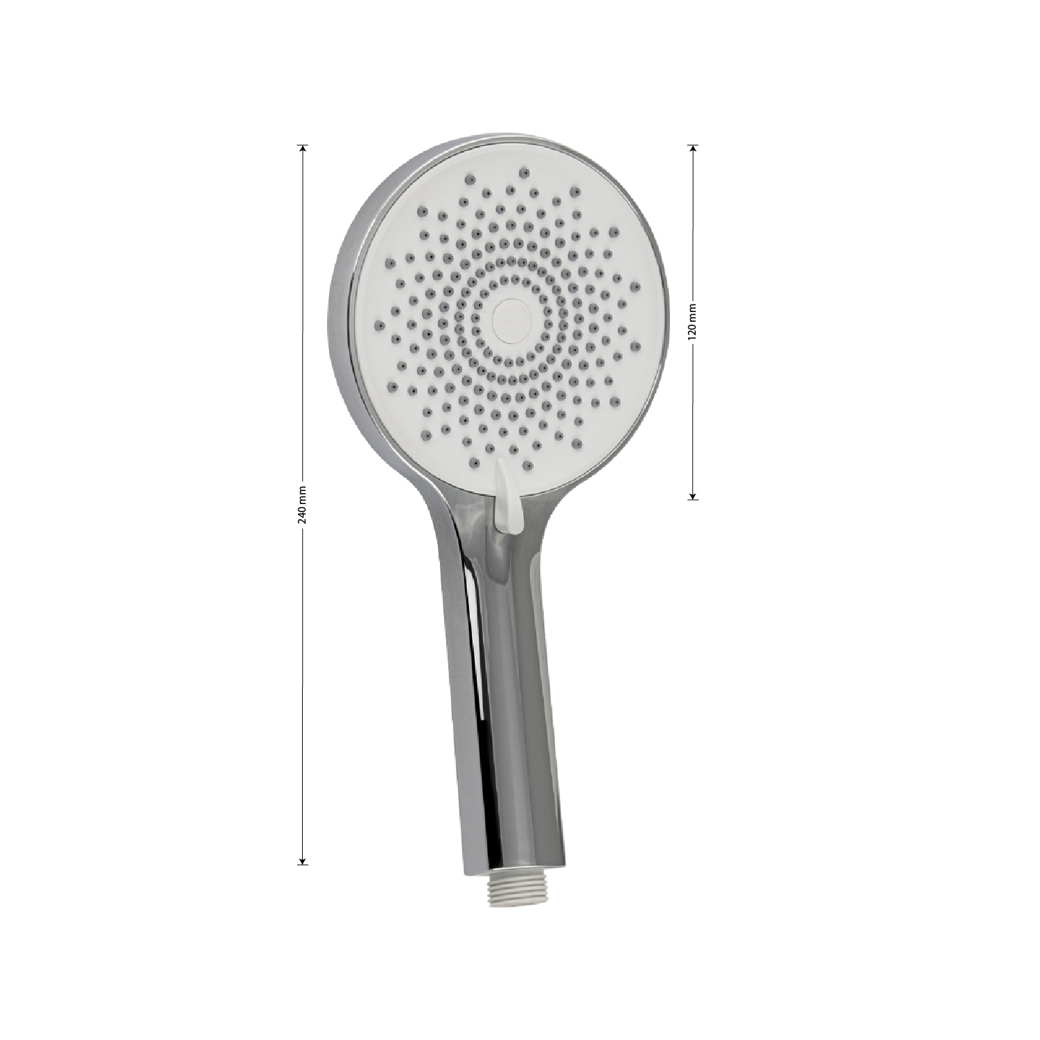 Душевая лейка массажная, отличается современным технологичным дизайном, высокой надежностью, долговечностью. Она изготовлена из влагостойкого пластика АБС и имеет декоративное покрытие хромированного цвета, придающее устройству привлекательный вид и предохраняющее от агрессивного воздействия окружающей среды. Корпус отличается небольшим весом, что исключает повреждение напольной плитки или эмали ванны при случайном падении. Работает в трёх режимах с регулируемой интенсивностью: дождевая, обычная, струйный массаж. Ухаживать за душевой лейкой легко. Глянцевую поверхность достаточно протереть мягкой салфеткой, она в течение долгого времени не потеряет своего блеска. Система помогает мгновенно очистить силиконовые форсунки душевой лейки от известкового налета и загрязнения. Габаритные размеры: высота 240 мм, диаметр 120 мм. Вес - 0.25 кг, объём - 0.0024 м3.
