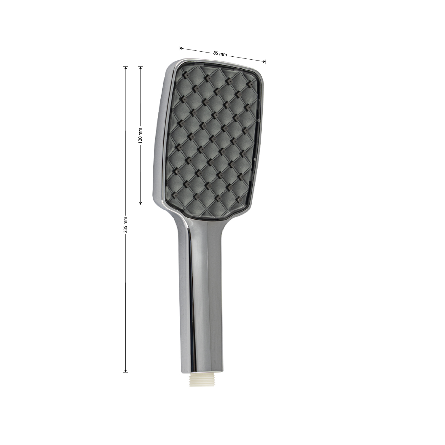 Душевая лейка квадратная с 3D эффектом, отличается современным технологичным дизайном, высокой надежностью, долговечностью. Она изготовлена из влагостойкого пластика АБС и имеет декоративное покрытие цвета «хром», придающее устройству привлекательный вид и предохраняющее от агрессивного воздействия окружающей среды. Корпус отличается небольшим весом, что исключает повреждение напольной плитки или эмали ванны при случайном падении. Ухаживать за душевой лейкой легко. Глянцевую поверхность достаточно протереть мягкой салфеткой, она в течение долгого времени не потеряет своего блеска. Система помогает мгновенно очистить силиконовые форсунки душевой лейки от известкового налета и загрязнения. Габаритные размеры: высота 235 мм, ширина корпуса 85 мм. Вес - 0.23 кг, объём - 0.00121 м3.