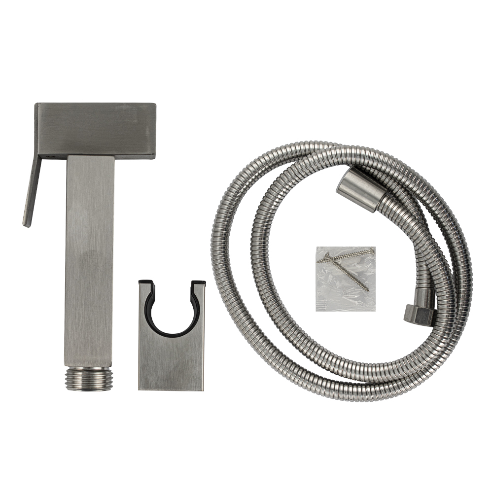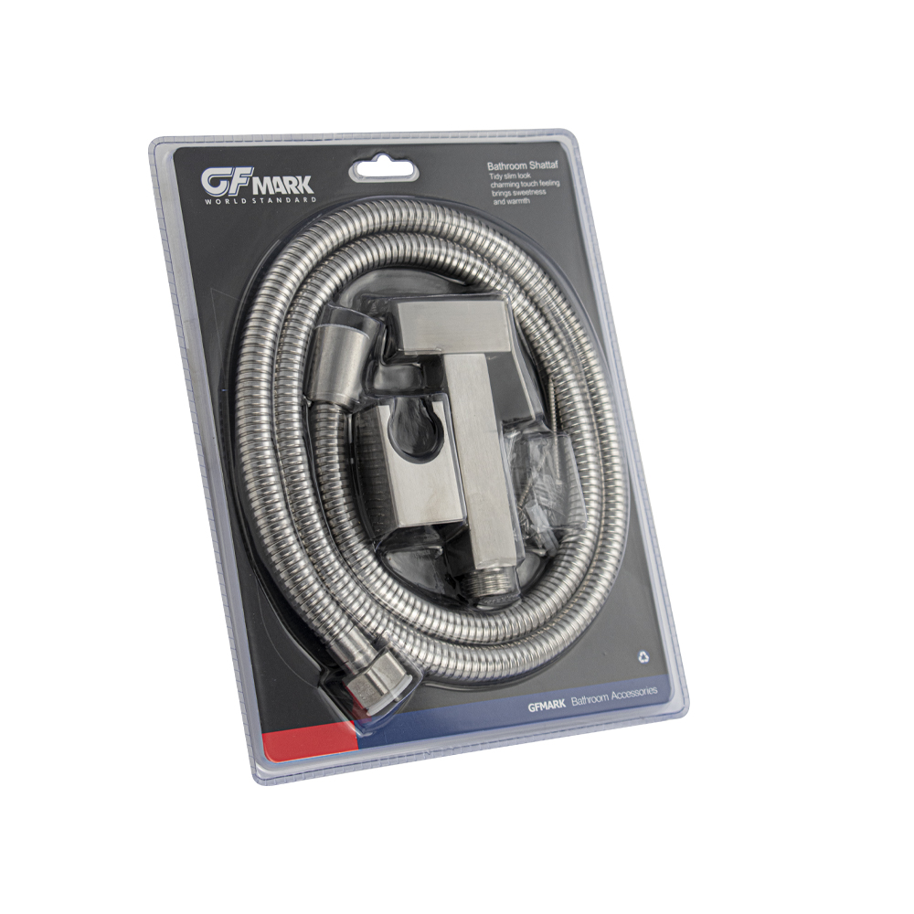 Гигиенический набор - лейка, шланг, кронштейн, из нержавеющей стали, от торговой марки GFmark – удобное и безопасное устройство для проведения гигиенических процедур. Лейка изготовлена из прочного материала, обеспечивающего великолепные эксплуатационные свойства изделия. Подача воды осуществляется нажатием клавиши управления. Матовое покрытие придает модели изящный внешний вид и позволяет легко вписать в современный интерьер ванной и туалетной комнаты. Габаритные размеры: высота 110 мм, ширина 65 мм, длина шланга 150 см. Вес - 0,48 кг, объём - 0,00179 м3. В комплекте лейка, шланг, кронштейн, комплект креплений.