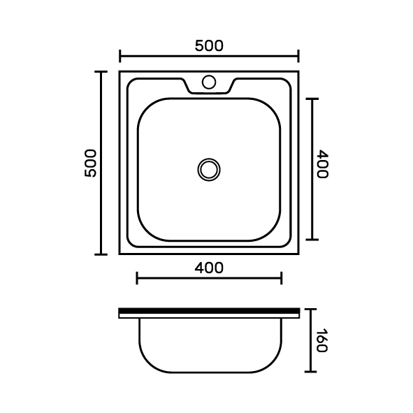 Накладная мойка FABIA из нержавеющей стали отличный вариант для кухни в стиле «эконом», она прослужит многие годы. Классическая форма и матовый цвет «хром» гармонично впишутся в любой интерьер и никогда не выйдут из моды. Оптимальный размер позволяет свободно мыть посуду, без страха её разбить. Мойка устанавливается на тумбочку. Практичная площадка, расположенная по центру, даёт возможность вмонтировать любую понравившуюся модель смесителя. Габаритные размеры: ширина 500 мм, длина 500 мм, глубина 160 мм, толщина стали 0,4 мм. Вес - 1,300 кг, объём - 0,01028 м3.