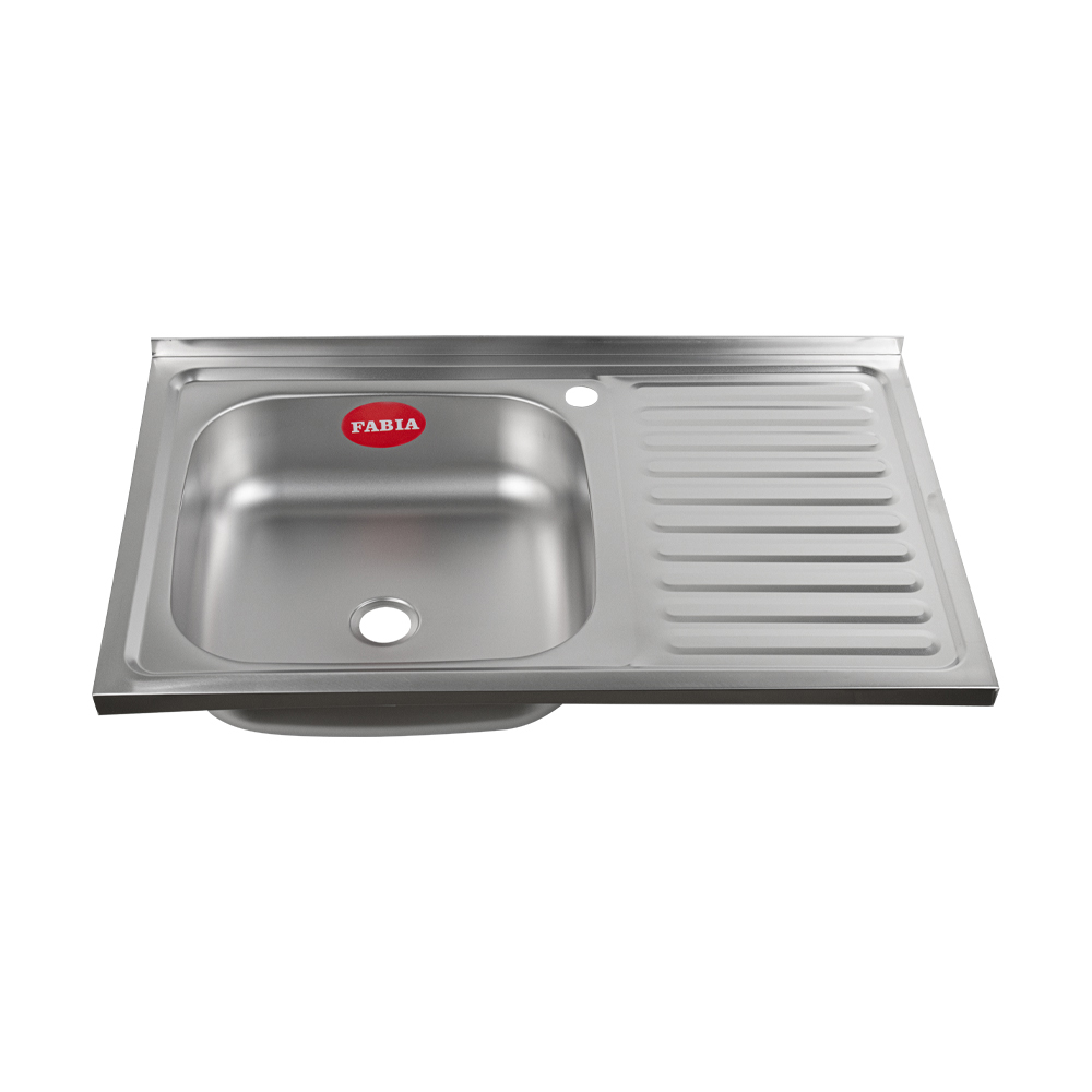 Накладная мойка FABIA из нержавеющей стали отличный вариант для кухни в стиле «эконом», она прослужит многие годы. Классическая форма и матовый цвет «хром» гармонично впишутся в любой интерьер и никогда не выйдут из моды. Оптимальный размер с площадкой для посуды позволяет свободно мыть посуду, без страха её разбить. Мойка устанавливается на тумбочку. Практичная площадка, расположенная по центру, даёт возможность вмонтировать любую понравившуюся модель смесителя. Габаритные размеры: ширина 800 мм, длина 500 мм, глубина 160 мм, толщина стали 0,4 мм. Вес - 1,700 кг, объём - 0,01620 м3.