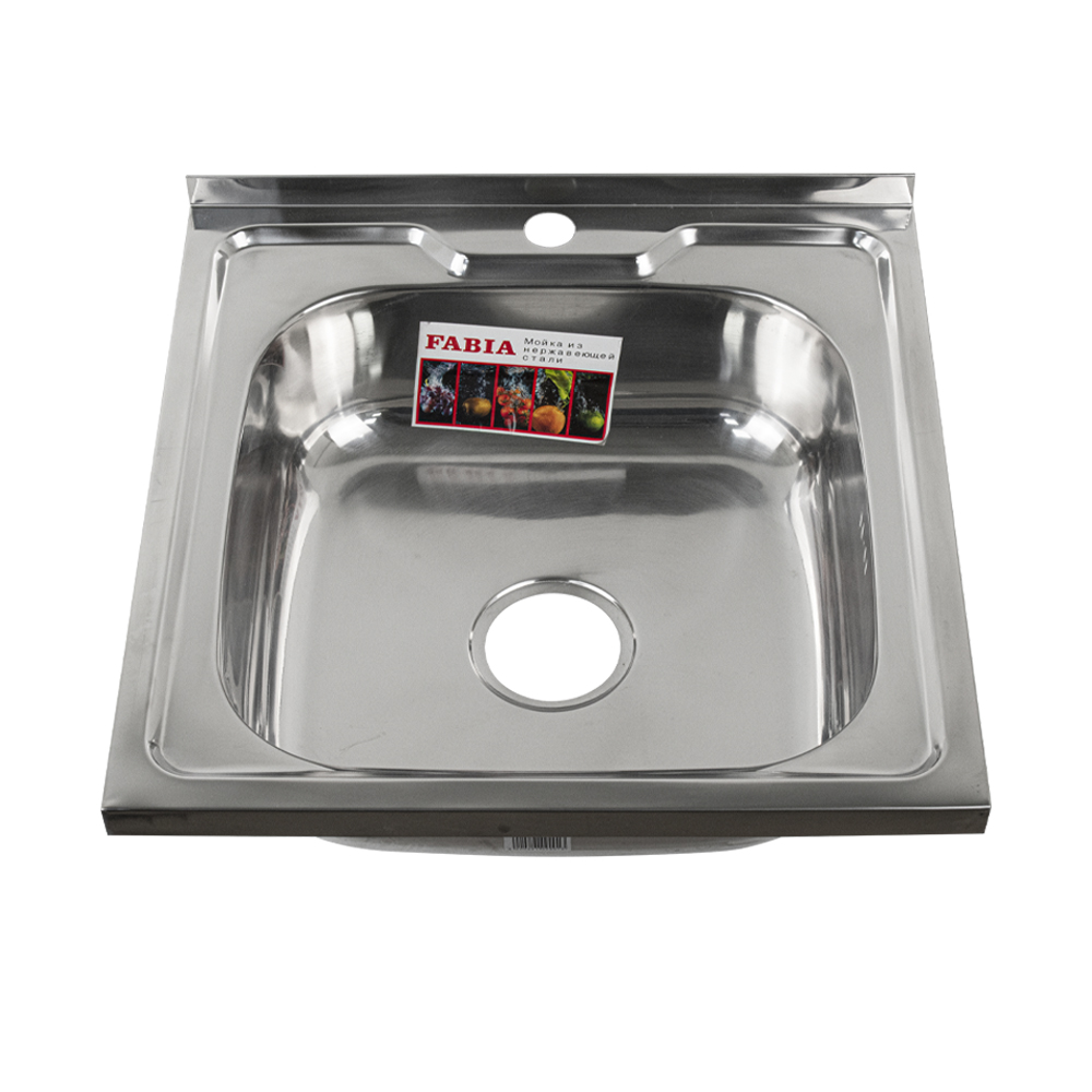 Накладная мойка FABIA из нержавеющей стали отличный вариант для кухни, она прослужит многие годы. Классическая форма и хромированный цвет гармонично впишутся в любой интерьер и никогда не выйдут из моды. Оптимальный размер позволяет свободно мыть посуду, без страха её разбить. Мойка устанавливается на тумбочку. Практичная площадка, расположенная по центру, даёт возможность вмонтировать любую понравившуюся модель смесителя. В комплекте сифон с большой горловиной с переливом. Габаритные размеры: ширина 500 мм, длина 500 мм, глубина 160 мм, толщина стали 0,6 мм. Вес - 2,200 кг, объём - 0,01352 м3.