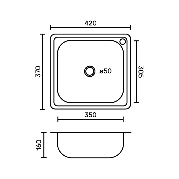 Врезная мойка FABIA из нержавеющей стали отличный вариант для кухни, она прослужит многие годы. Классическая форма и глянцевый цвет гармонично впишутся в любой интерьер и никогда не выйдут из моды. Оптимальный размер позволяет свободно мыть посуду, без страха её разбить. Мойка врезается в столешницу. Специальное дополнительное антишумовое покрытие, нанесенное на обратную сторону чаш, разработано для снижения шума воды в мойке. Практичная площадка, расположенная в углу, даёт возможность вмонтировать любую понравившуюся модель смесителя. В комплекте гофросифон.Монтаж мойки производится с помощью креплений поставляемых в комплекте. Габаритные размеры: ширина 420 мм, длина 370 мм, глубина 160 мм, толщина стали 0,6 мм. Вес - 1,7 кг, объём - 0,02797 м3.