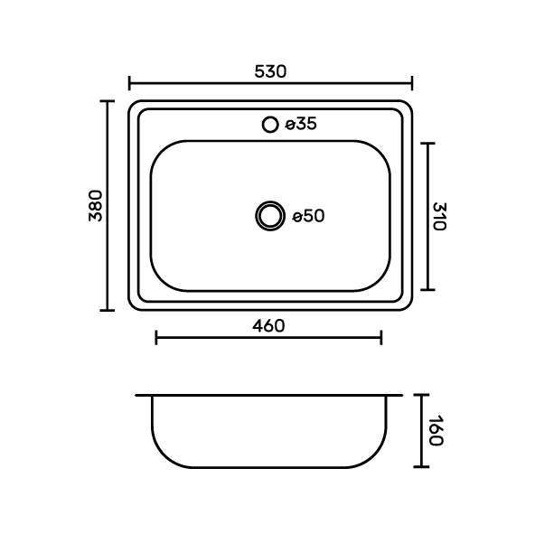 Врезная мойка FABIA из нержавеющей стали, отличный вариант для кухни, она прослужит многие годы. Классическая форма и хромированный цвет гармонично впишутся в любой интерьер и никогда не выйдут из моды. Оптимальный размер позволяет свободно мыть посуду, без страха её разбить. Мойка врезается в столешницу. Специальное дополнительное антишумовое покрытие, нанесенное на обратную сторону чаш, разработано для снижения шума воды в мойке. Конструкция краев мойки, крепления и специальная уплотнительная прокладка обеспечивает максимально плотное прилегание к столешнице и защищает от протекания. Практичная площадка, расположенная в углу, даёт возможность вмонтировать любую понравившуюся модель смесителя. В комплекте сифон с большой горловиной с переливом, крепёж. Габаритные размеры: ширина 530 мм, длина 380 мм, глубина 160 мм, толщина стали 0,6 мм. Вес - 2,500 кг, объём - 0,04400 м3.