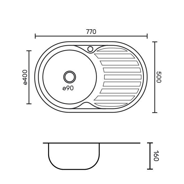 Врезная мойка FABIA из нержавеющей стали, отличный вариант для кухни, она прослужит многие годы. Классическая форма и хромированный цвет гармонично впишутся в любой интерьер и никогда не выйдут из моды. Оптимальный размер с площадкой для посуды позволяет свободно мыть посуду, без страха её разбить. Мойка врезается в столешницу. Специальное дополнительное антишумовое покрытие, нанесенное на обратную сторону чаш, разработано для снижения шума воды в мойке. Конструкция краев мойки, крепления и специальная уплотнительная прокладка обеспечивает максимально плотное прилегание к столешнице и защищает от протекания. Практичная площадка, расположенная по центру, даёт возможность вмонтировать любую понравившуюся модель смесителя. В комплекте сифон с большой горловиной с переливом, крепёж. Габаритные размеры: ширина 770 мм, длина 500 мм, глубина 160 мм, толщина стали 0,6 мм. Вес - 2.500 кг, объём - 0.022 м3.