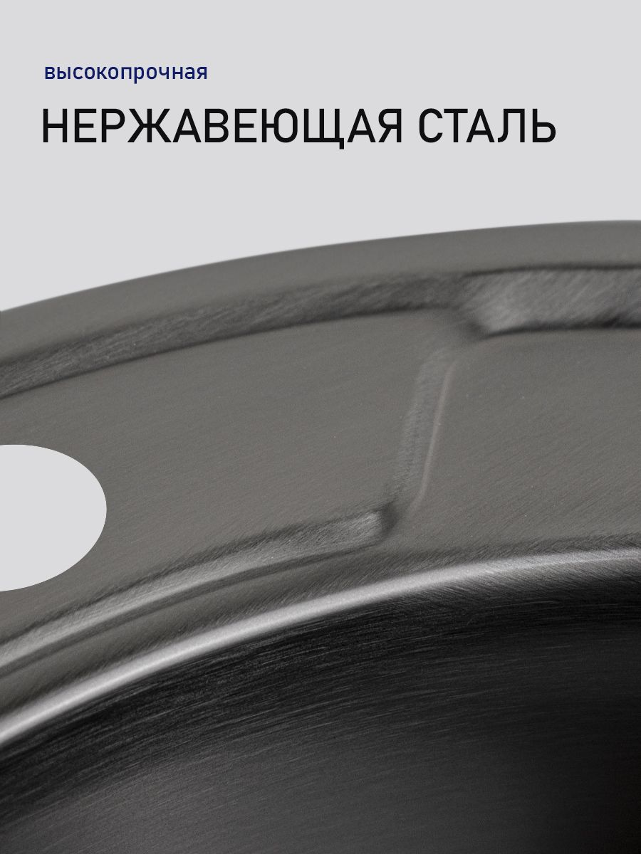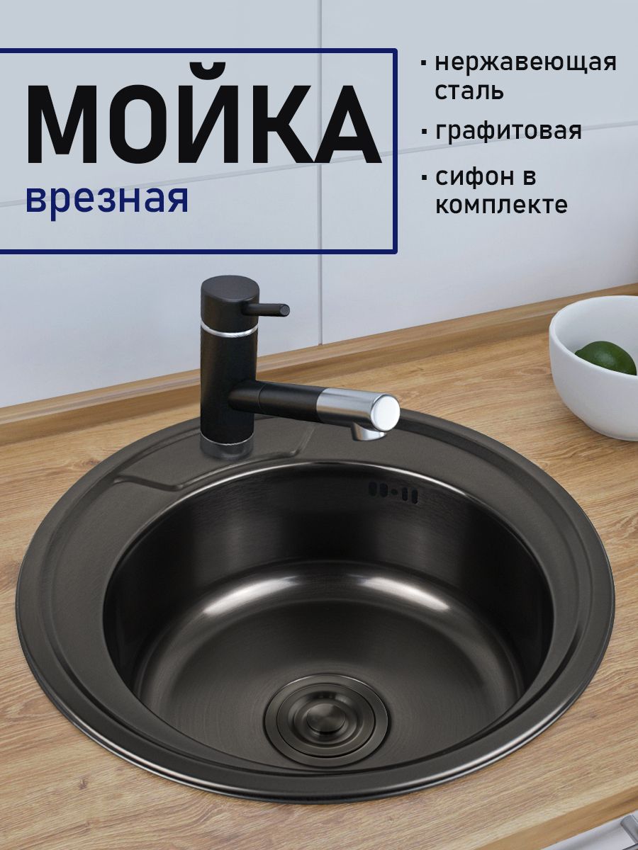 Врезная мойка FABIA из нержавеющей стали, отличный вариант для кухни, она прослужит многие годы. Классическая форма и цвет под графит гармонично впишутся в любой интерьер и никогда не выйдут из моды. Оптимальный размер позволяет свободно мыть посуду, без страха её разбить. Мойка врезается в столешницу. Специальное дополнительное антишумовое покрытие, нанесенное на обратную сторону чаш, разработано для снижения шума воды в мойке. Конструкция краев мойки, крепления и специальная уплотнительная прокладка обеспечивает максимально плотное прилегание к столешнице и защищает от протекания. Практичная площадка, расположенная по центру, даёт возможность вмонтировать любую понравившуюся модель смесителя. В комплекте сифон с большой горловиной с переливом, крепёж. Габаритные размеры: d = 490 мм, глубина 180 мм, толщина стали 0,8 мм. Вес - 2,600 кг, объём - 0,01301 м3.