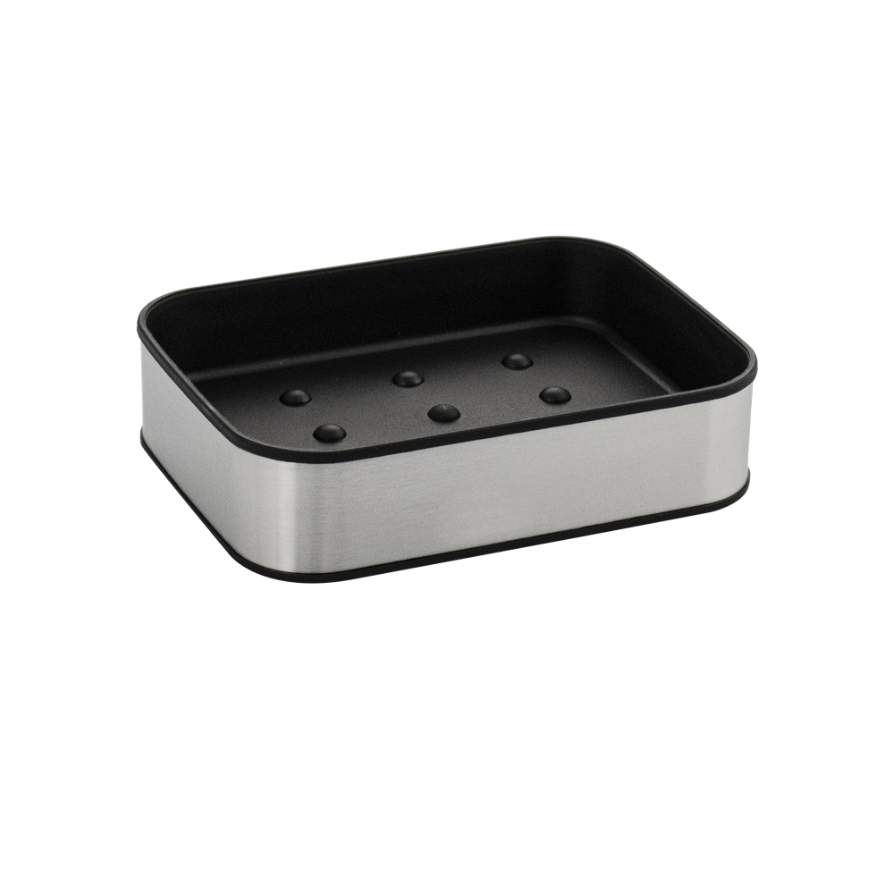 Мыльница для мыла настольная — необходимый аксессуар любой ванной комнаты и кухни. Приспособление обеспечит порядок и правильное хранение гигиенических принадлежностей. Изделие выполнено из нержавеющей стали с матовым покрытием и чёрного пластика АБС. Такое сочетание материалов делает конструкцию прочной и долговечной. Гармоничный дизайн отлично впишется в любой интерьер. Изделие имеет специальное покрытие, которое защищает его от влаги и придает ему стильный внешний вид. В коллекции представлены: дозатор для мыла, мыльница, напольный ершик для унитаза, стакан для зубных щеток. Габаритный размеры: высота 30 мм,основание 90*120 мм. Вес - 0,200 кг, объём - 0,00063 м3.