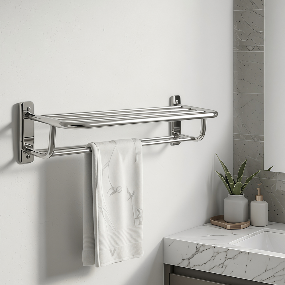 Полка для полотенца с опорой, двойная, из алюминия