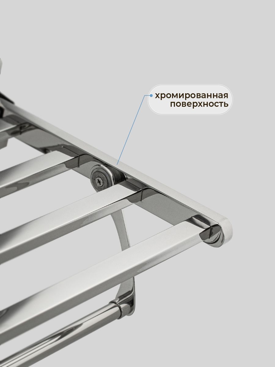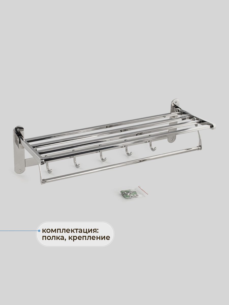 Полка для полотенца с опорой, большая, для ванной, привлекает своим современным дизайном, многофункциональностью и надежностью конструкции. Откидывающаяся на 90° верхняя часть полки в позволяет размещать её даже в самых тесных помещениях. Кухня, ванная, прихожая или гардеробная - эта полка идеально подойдет везде. Металлическая полка оснащена дополнительной перекладиной и крючками. Нержавеющая сталь делает её устойчивой к влаге и исключает появление ржавчины. Полка для ванной функциональное и практичное решение для любого интерьера. Материал изготовления — нержавеющая сталь 304. Хромированное покрытие очень стойко переносит истирания и обеспечивает безупречный вид изделия. Идеально подойдет не только для ванной, но и для кухни. Изделие крепится к стене с помощью дюбелей и саморезов (входят в комплект). Габаритные размеры: ширина 600 мм, высота 170 мм, глубина 240 мм. Вес - 1.65 кг, объём - 0.0175 м3.