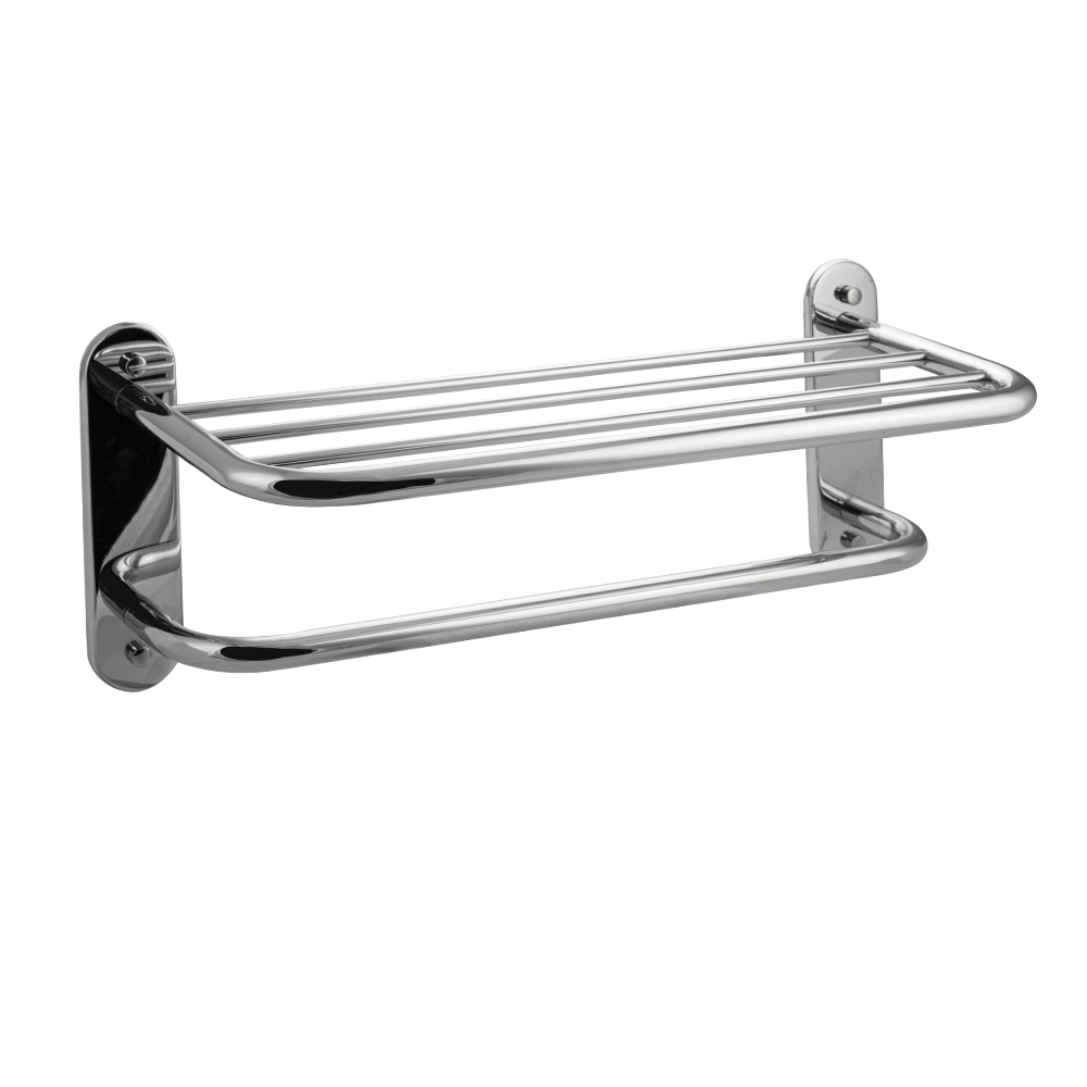 Полка для полотенца с опорой большая, для ванной, привлекает своим современным дизайном, многофункциональностью и надежностью конструкции. Вместительная верхняя часть полки в ванную комнату позволяет размещать на ней объёмные вещи. Кухня, ванная, прихожая, кладовка или гардеробная - эта полка идеально подойдет везде. Металлическая полка оснащена дополнительной перекладиной. Безупречно отшлифованная нержавеющая сталь делает её устойчивой к влаге и исключает появление ржавчины. Полка для ванной функциональное и практичное решение для любого интерьера. Материал изготовления — нержавеющая сталь. Хромированное покрытие очень стойко переносит истирания и обеспечивает зеркальный блеск изделия. Идеально подойдет не только для ванной, но и для кухни. Изделие крепится к стене с помощью дюбелей и саморезов (входят в комплект). Габаритные размеры: ширина 530 мм, высота 210 мм, глубина 210 мм. Вес - 1,100 кг, объём - 0,00572 м3.