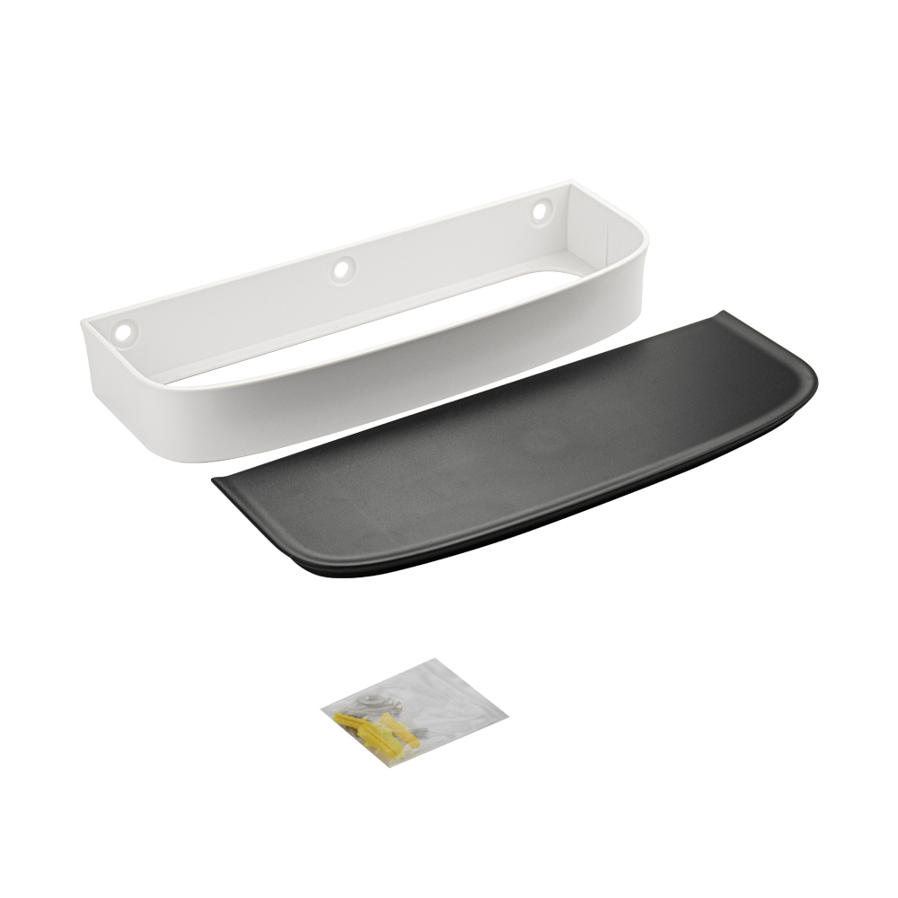 Полочка для принадлежностей прямоугольная с литым дном однаэтажная с белым пластиковым вкладышем, с широким бортом, обладает высокими эксплуатационными характеристиками и подходит для использования дома, в общественных местах: отелях, ресторанах и пр. Изготовлена из прочного пластика АБС с матовым покрытием, которое придает безупречный вид и долговечность. Аксессуар не занимают много места, надежно фиксируется к стене при помощи набора креплений (входят в комплект) и служит удобным местом для хранения бытовых и косметических средств. Габаритные размеры: длина 350 мм, глубина 125 мм, высота 55 мм. Вес - 0,600 кг, объём - 0,00400 м3