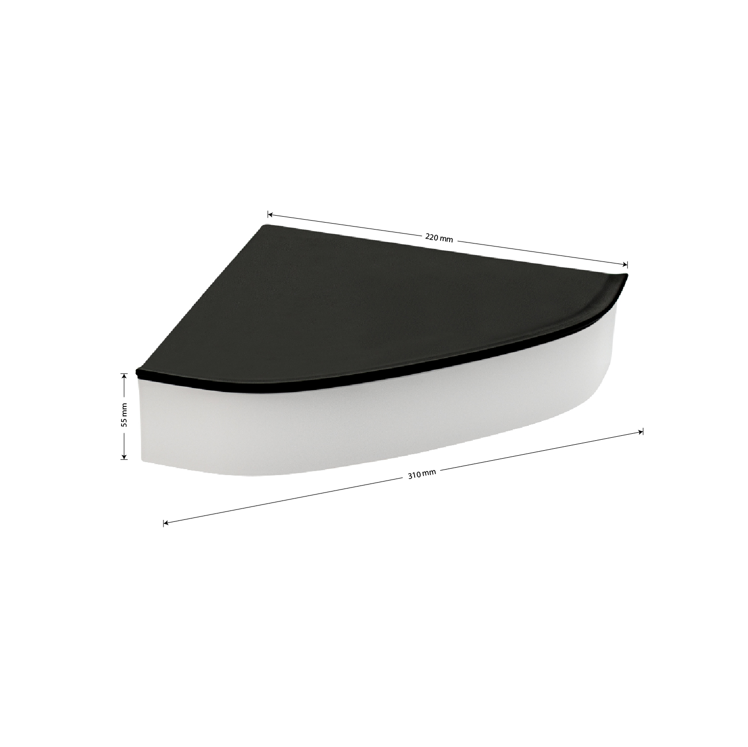 Полочка для принадлежностей угловая с литым дном однаэтажная с белым пластиковым вкладышем, с широким бортом, обладает высокими эксплуатационными характеристиками и подходит для использования дома, в общественных местах: отелях, ресторанах и пр. Изготовлена из прочного пластика АБС с матовым покрытием, которое придает безупречный вид и долговечность. Аксессуар не занимают много места, надежно фиксируется к стене при помощи набора креплений (входят в комплект) и служит удобным местом для хранения бытовых и косметических средств. Габаритные размеры: ширина 310 мм, длина края 220 мм, высота 55 мм. Вес - 0,500 кг, объём - 0,00430 м3