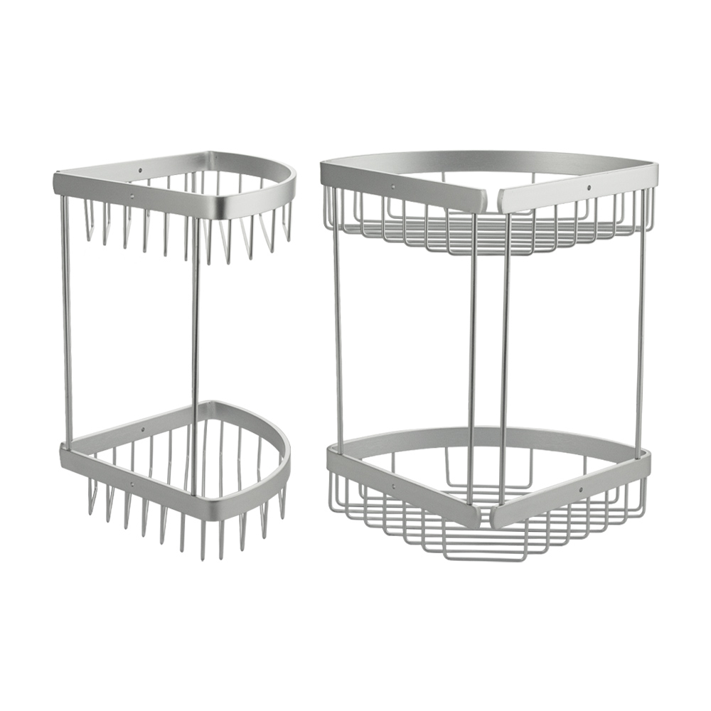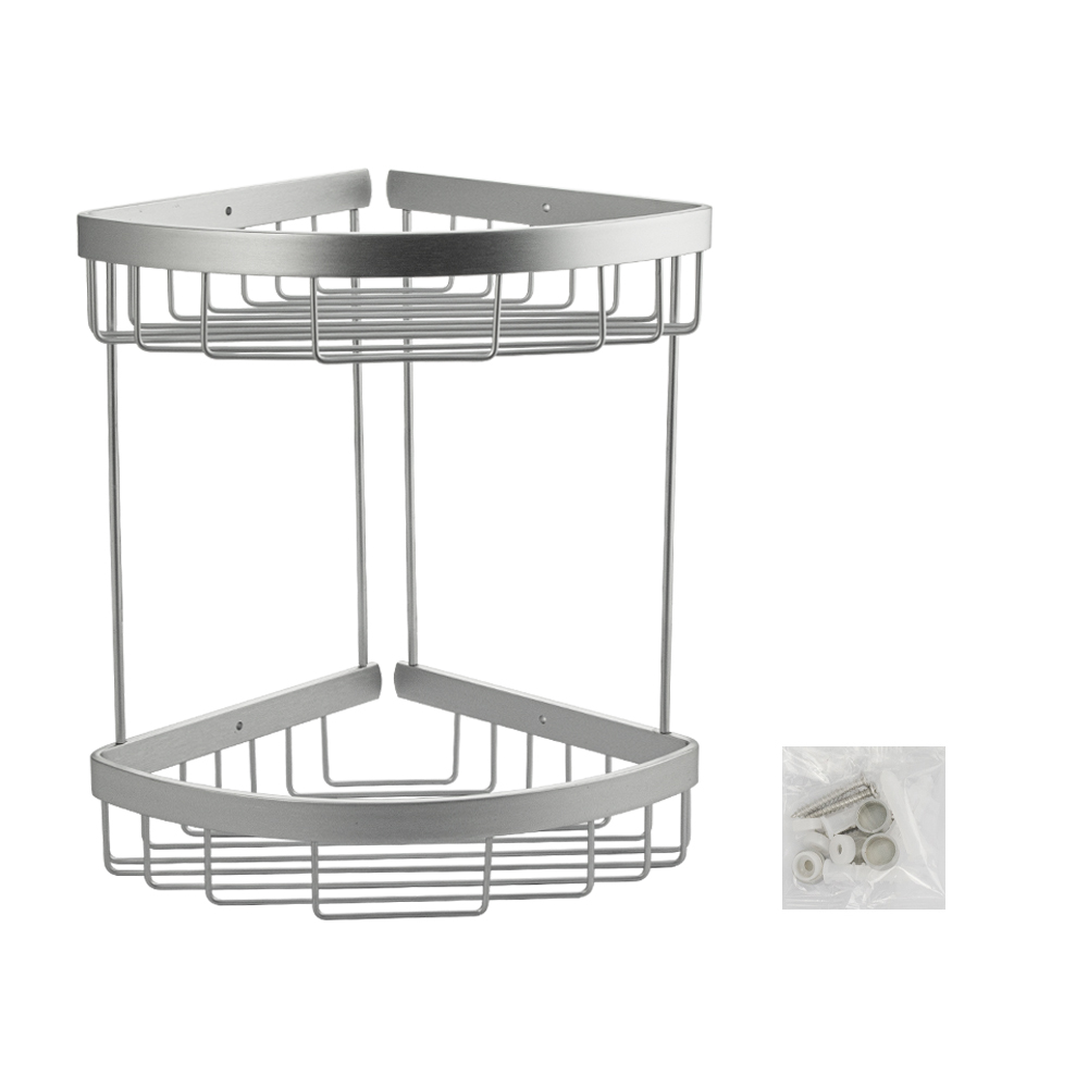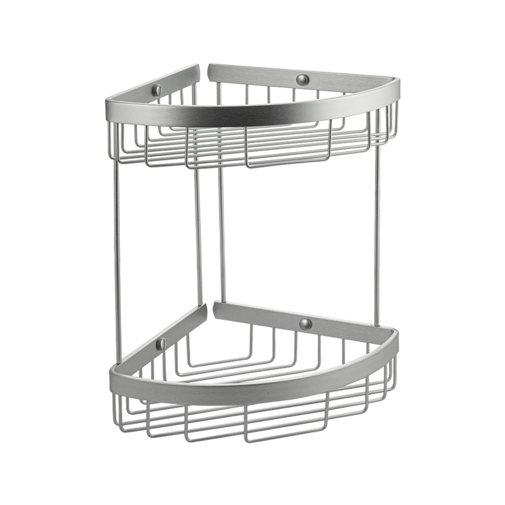 Полочка для принадлежностей угловая, решётка, двухэтажная с бортом 20 мм, обладает высокими эксплуатационными характеристиками и подходит для использования дома, в общественных местах: отелях, ресторанах и пр. Изготовлена из прочного алюминия с матовым покрытием, которое придает безупречный вид и долговечность. Аксессуар не занимает много места, надежно фиксируется к стене при помощи набора креплений (входят в комплект) и служит удобным местом для хранения бытовых и косметических средств. Габаритные размеры: высота 320 мм, длина 200 мм, ширина 290 мм, расстояние между полками 200 мм. Вес - 0,700 кг, объём - 0,01030 м3.